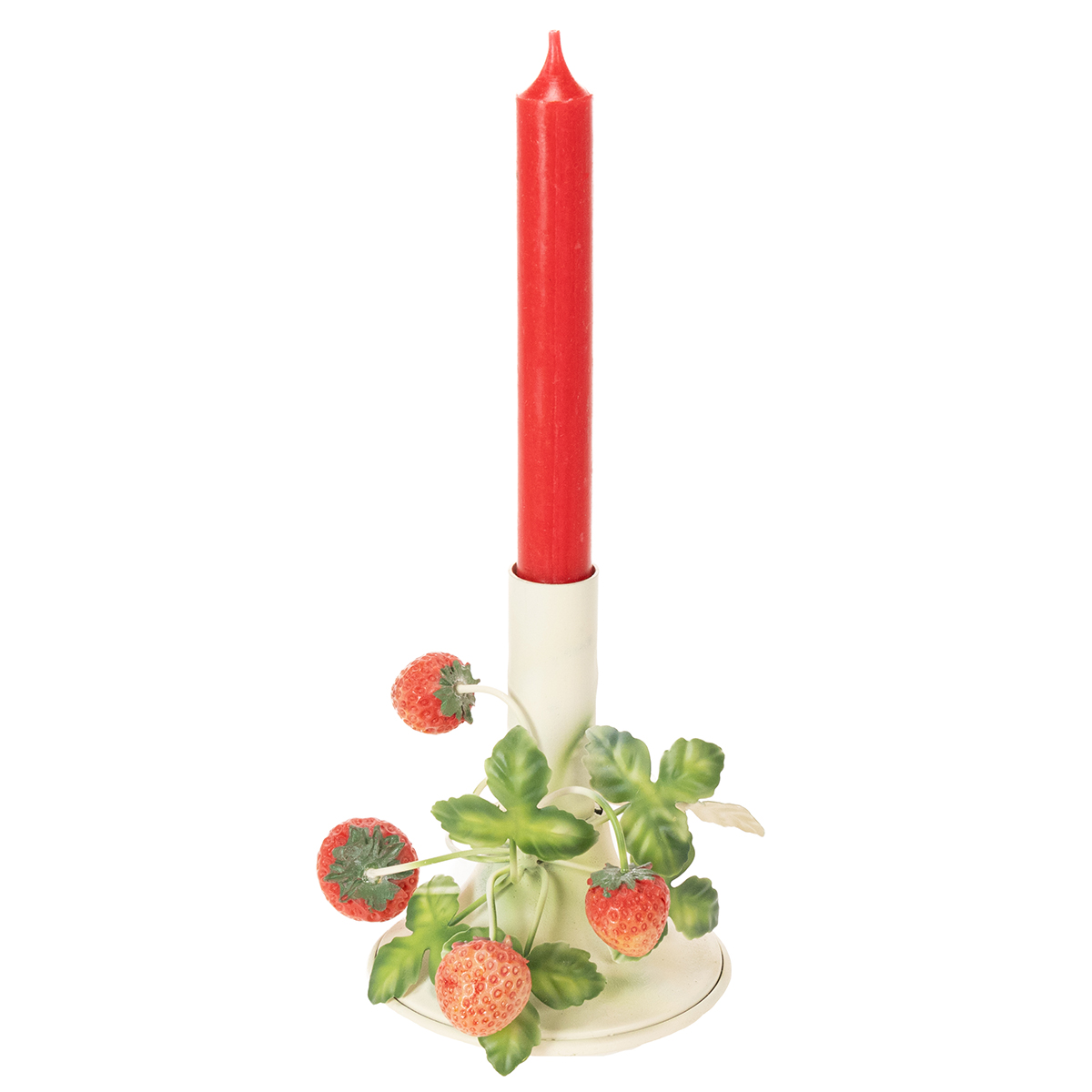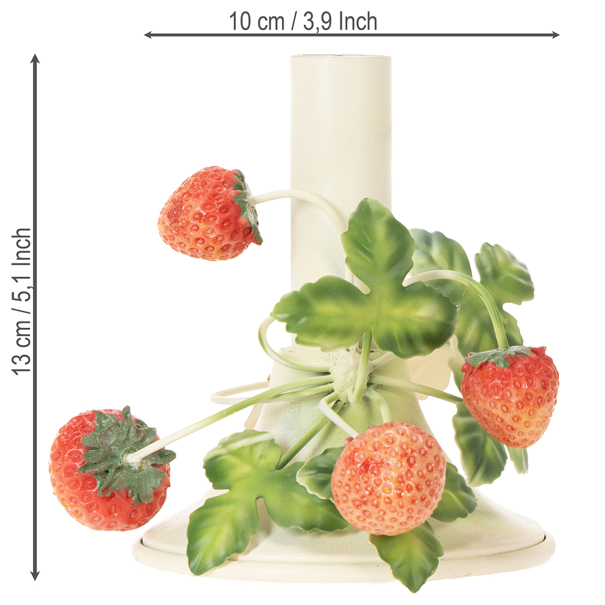 Metal candlestick with strawberry decoration, summer cream, H13cm