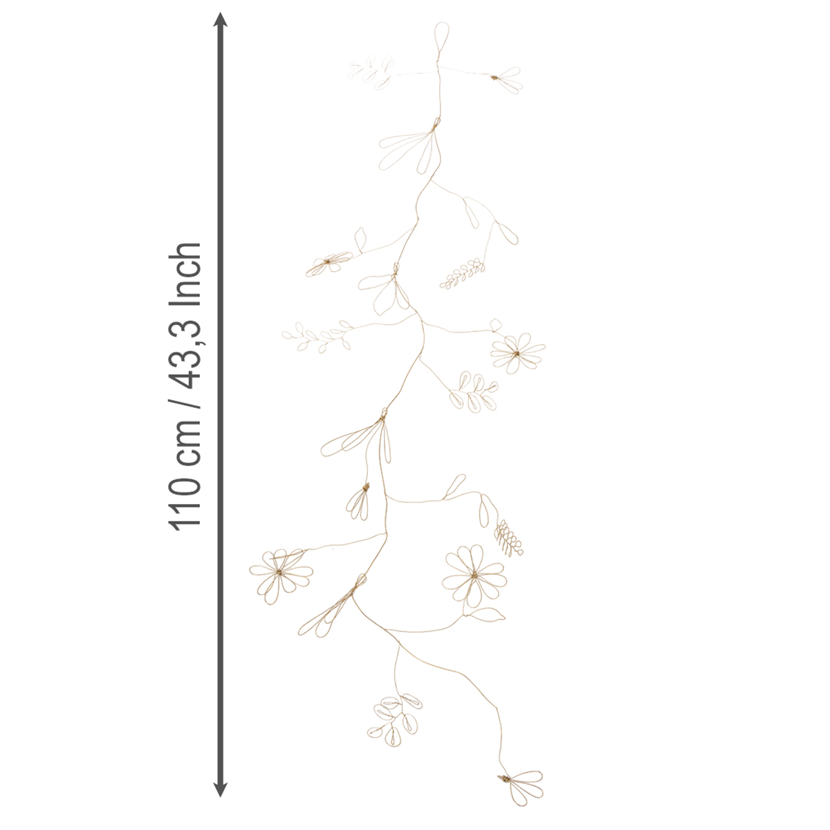 Metal flower decoration garland, wire for flower wreath, summer decoration, wall decoration, gold, 110cm