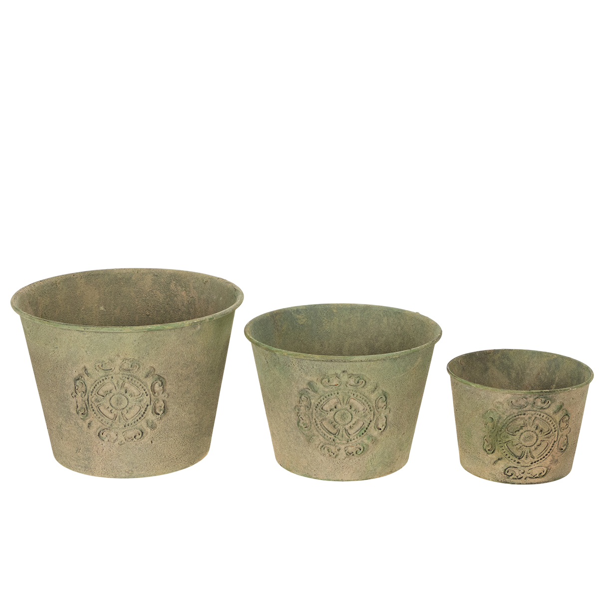Metal flower pot, green, vintage, Ø22cm–13.5cm, set of 3