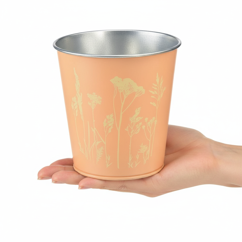 Metal flower pot, planter, peach yellow, Ø11.5cm H11.5cm