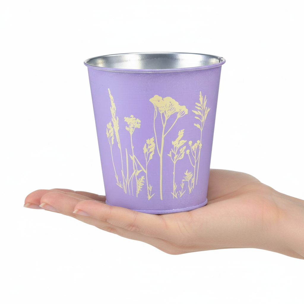 Metal flower pot, planter, purple flowers, Ø10cm H10.5cm