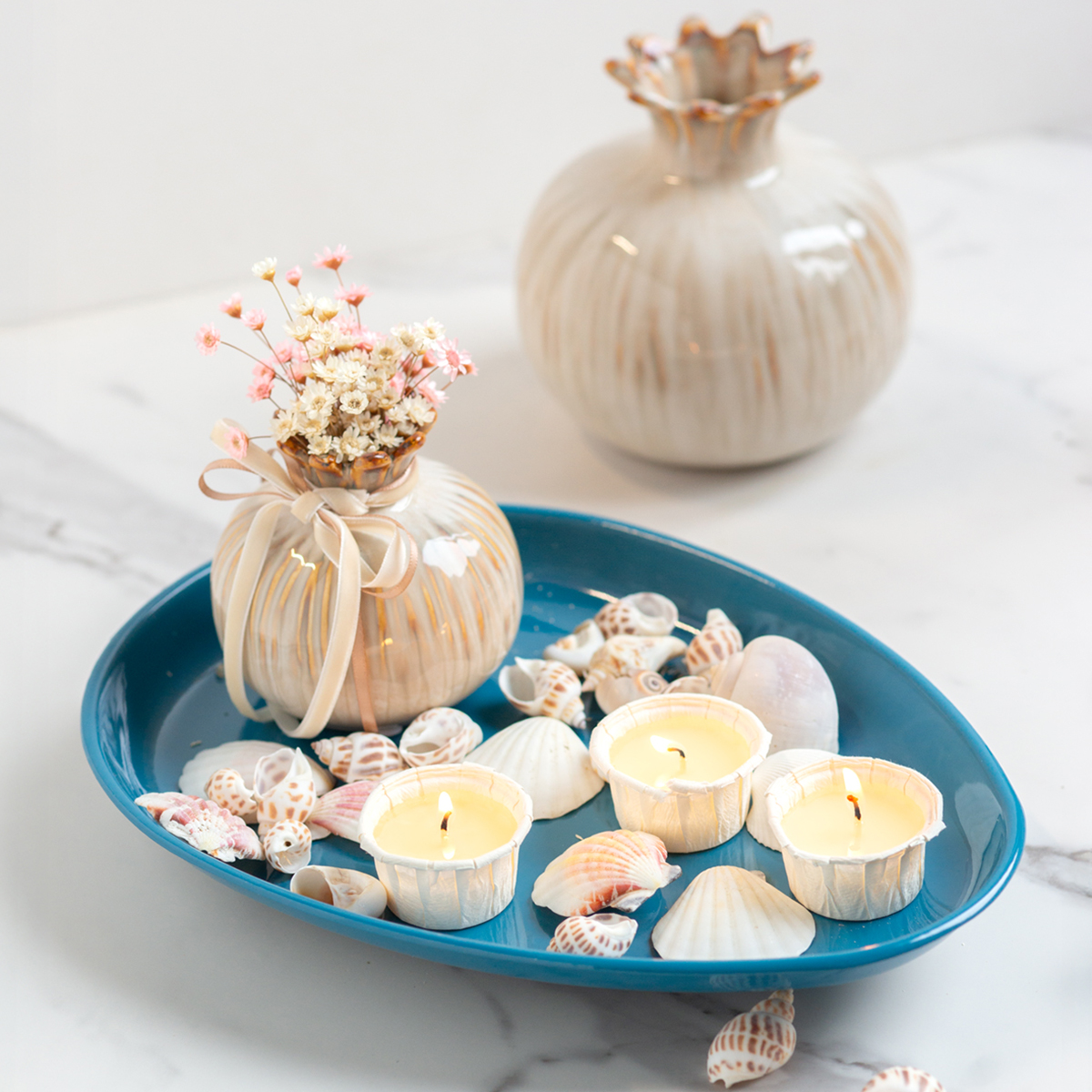 Whether for storing keys in the hallway or as a decorative snack bowl for a cozy evening with friends – the functionality of this bowl is unbeatable. Combined with green plant decorations or gleaming silver candle holders, it becomes a real eye-catcher. For those who prefer a more colorful look, it can be decorated with vibrant dried flowers or fresh fruit. Its low profile of just 3 centimeters ensures it always appears understated yet makes a statement. A true all-rounder, suitable for many occasions and rooms.