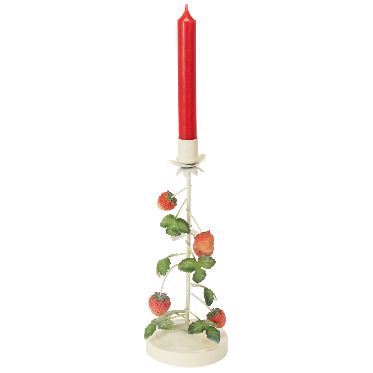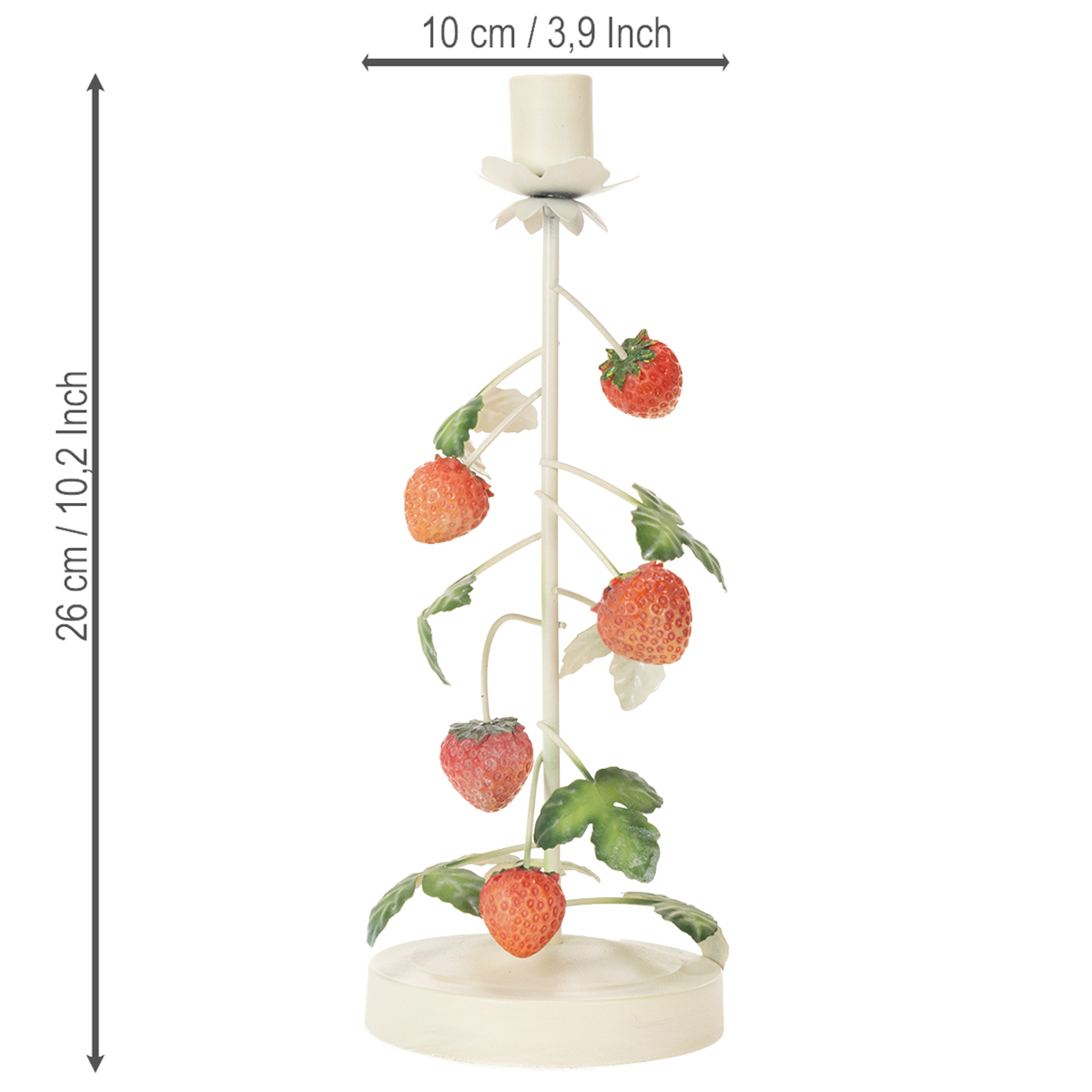 Metal taper candle holder with strawberry decoration, cream, round, H26cm