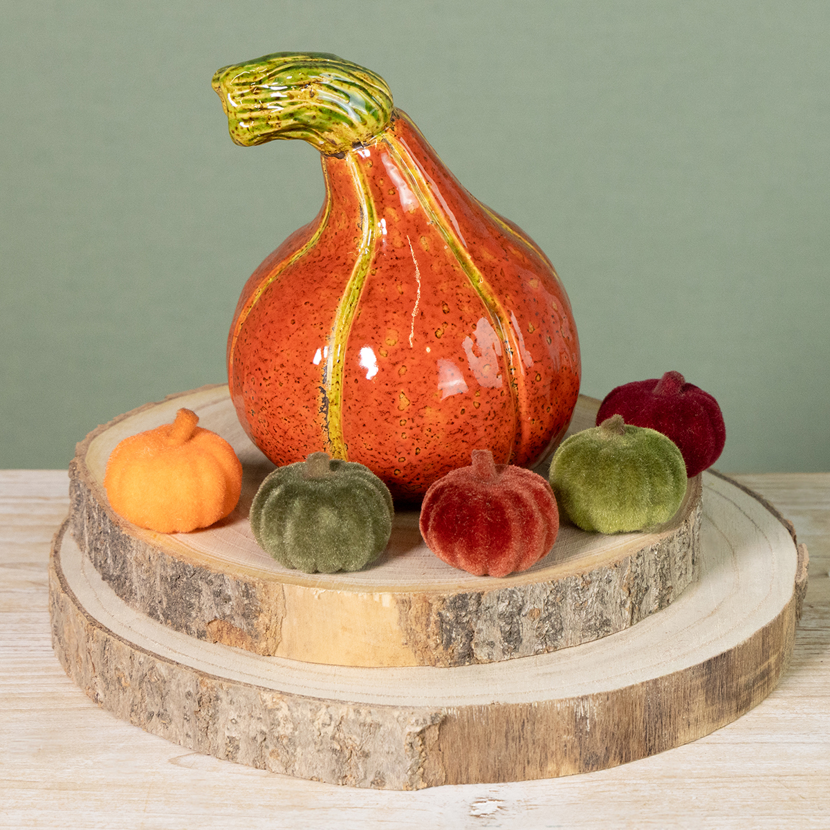 Add a touch of versatile autumn decor to your home with our flocked mini pumpkins. They're not only a visual highlight, but also offer versatile decorative options that will delight DIY enthusiasts and hobbyists. From classic autumn table decorations to modern Scandinavian-style living room decor, their velvety fabric surface and variety of colors make them attractive in any setting.