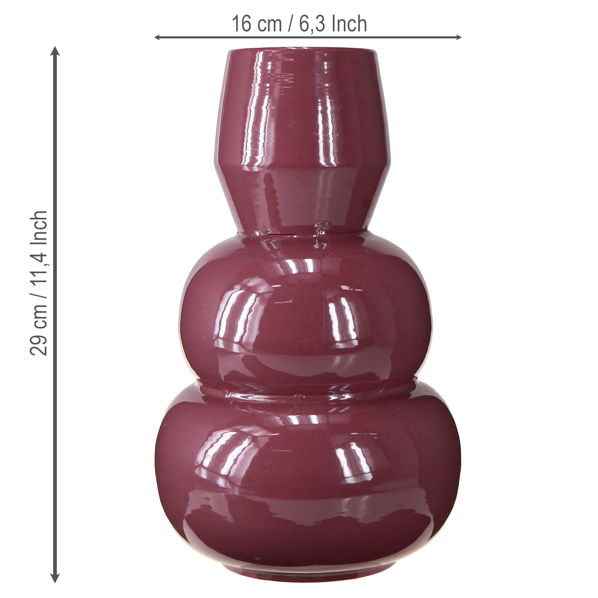 This exclusive red vase combines style, functionality, and versatility. Its harmonious proportions and curved shape lend it a modern yet subtle presence. The glossy glaze reflects the light, creating accents that enhance any room. The glamorous vase truly shines when paired with light colors or neutral tones.