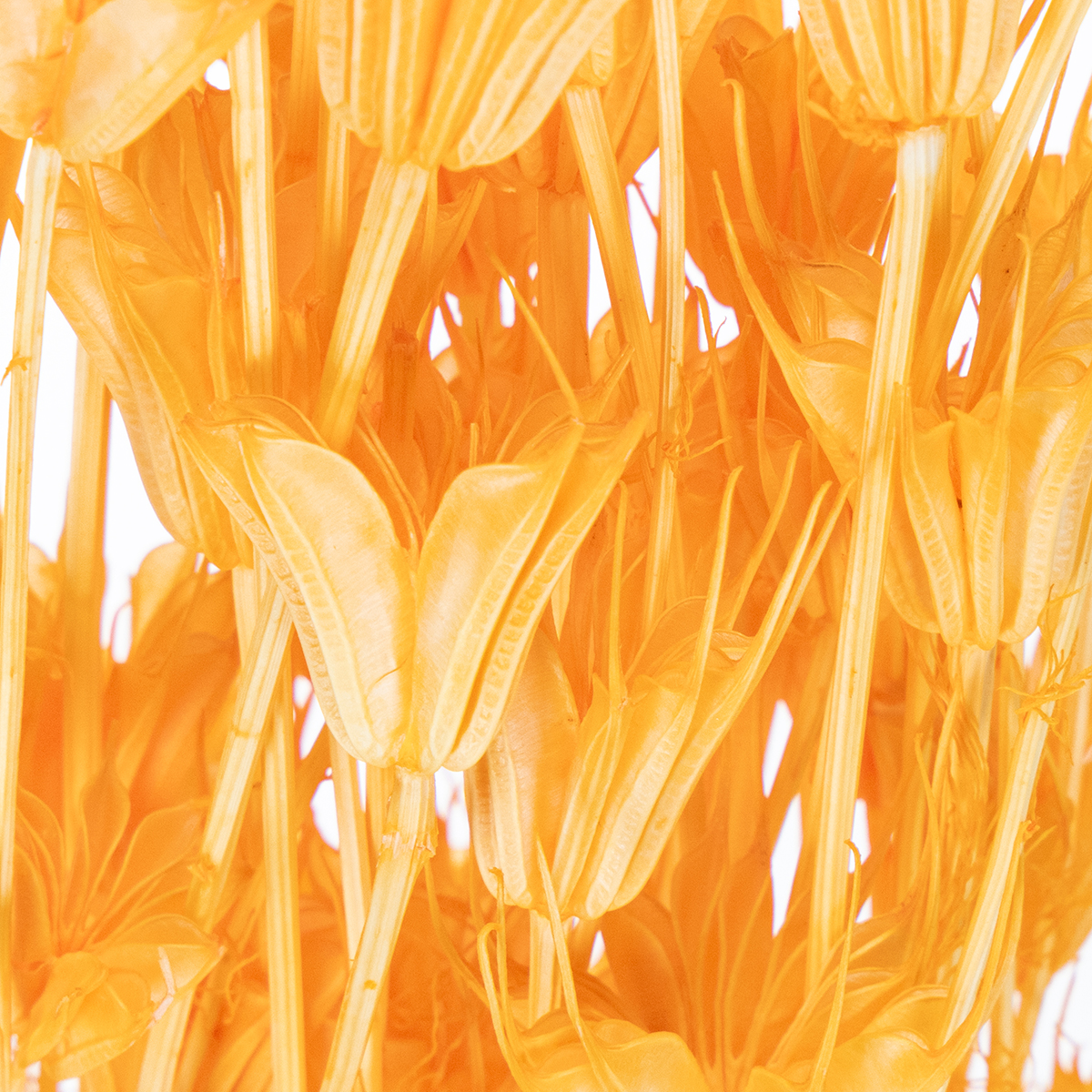 Imagine a decoration that is timelessly beautiful and fills every room with natural elegance. These bright, vibrant orange dried nigella flowers are more than just eye-catching – they make a statement. Perfect for those who want to add a special touch without sacrificing longevity. These dried flowers are ideal as stylish living room decorations, but also for weddings and events. The high-quality, dyed dried flowers combine durability with charm, creating an inviting atmosphere. At 70 centimeters tall and weighing only 50 grams, they are also easy to place and combine with other decorations. Immerse yourself in the world of contemporary home accessories and let your rooms shine!