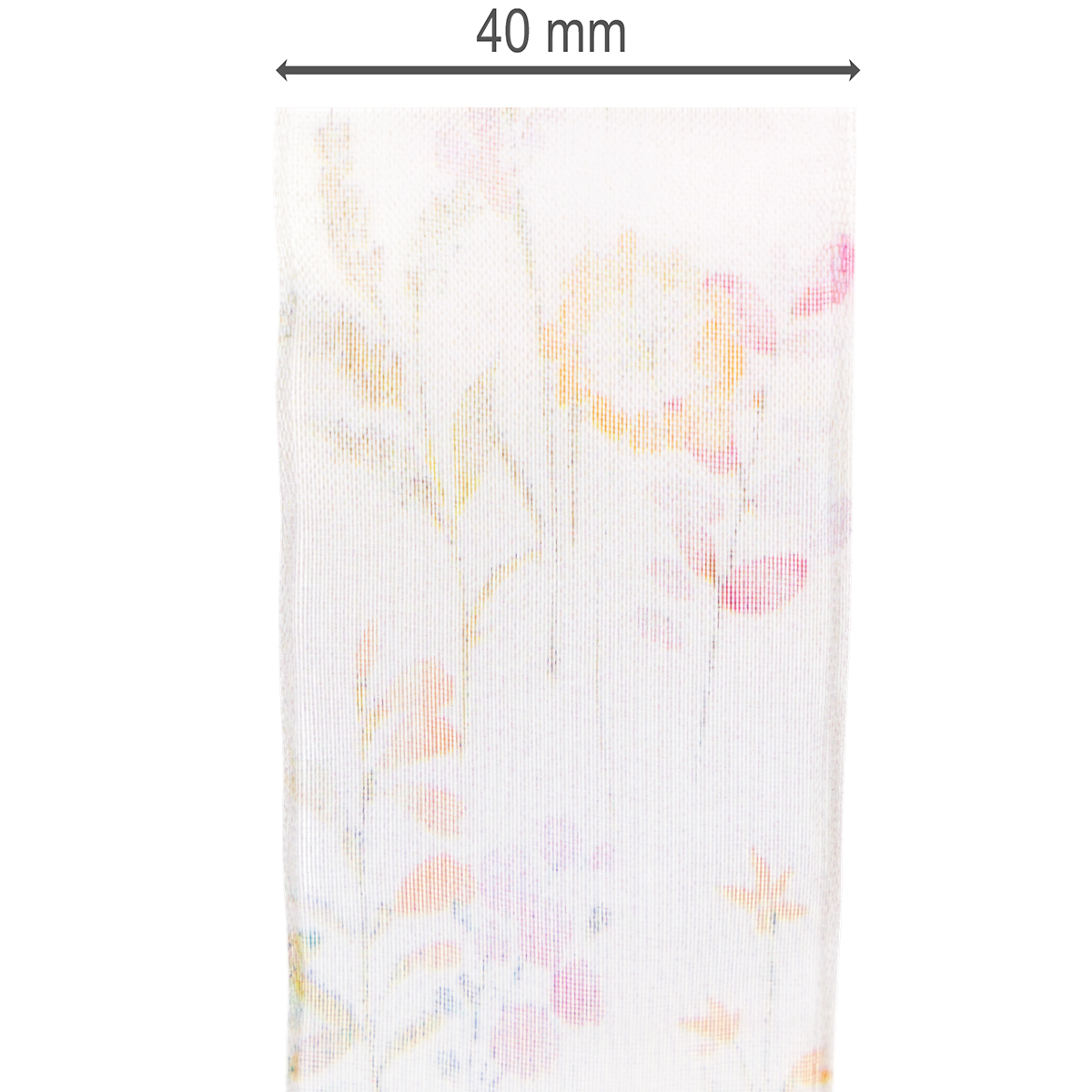 Organza ribbon, chiffon ribbon, floral, orange/pink, 40mm, 15m