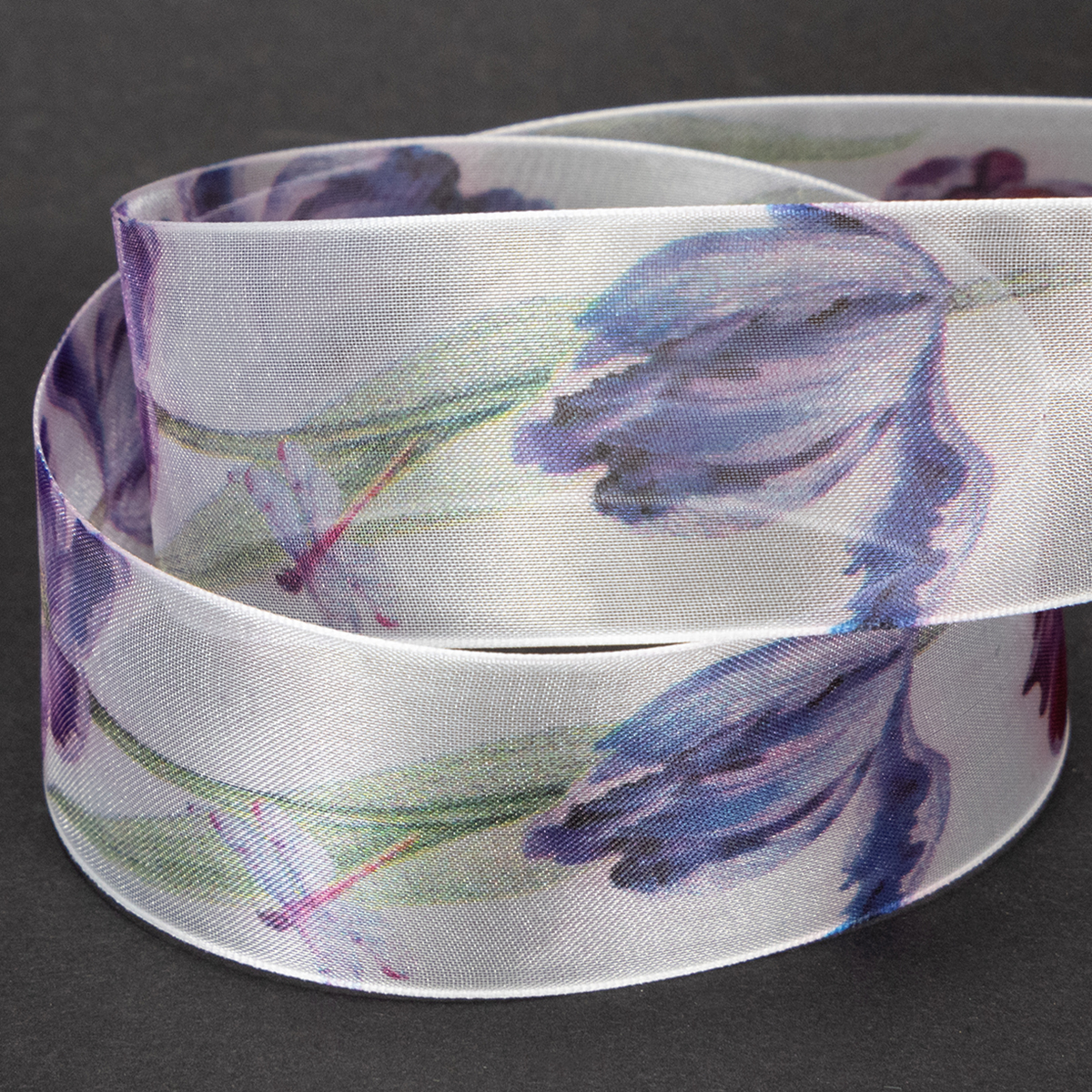 Organza ribbon, chiffon ribbon, parrot tulips, purple, 40mm, 18m