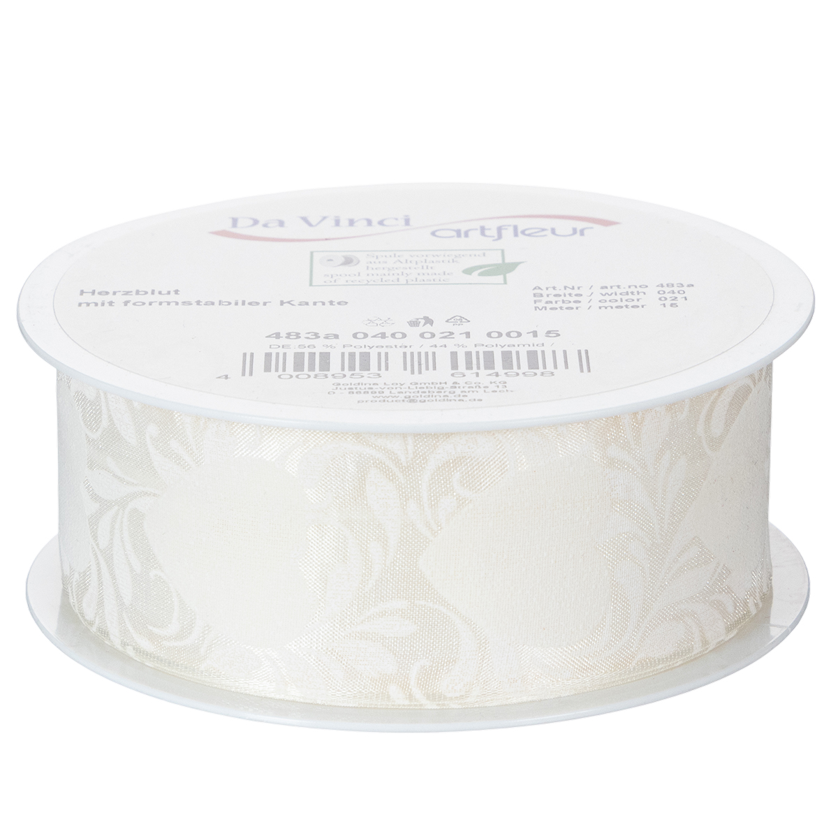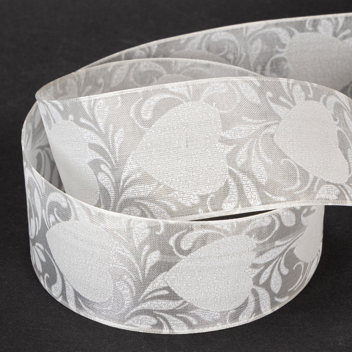The delicate hearts are surrounded by leafy branches like flowers and printed on the transparent organza fabric, giving the ribbon a sophisticated look reminiscent of lace. The warm cream tone of the decorative ribbon is timeless and at the same time conveys a certain nostalgia.
