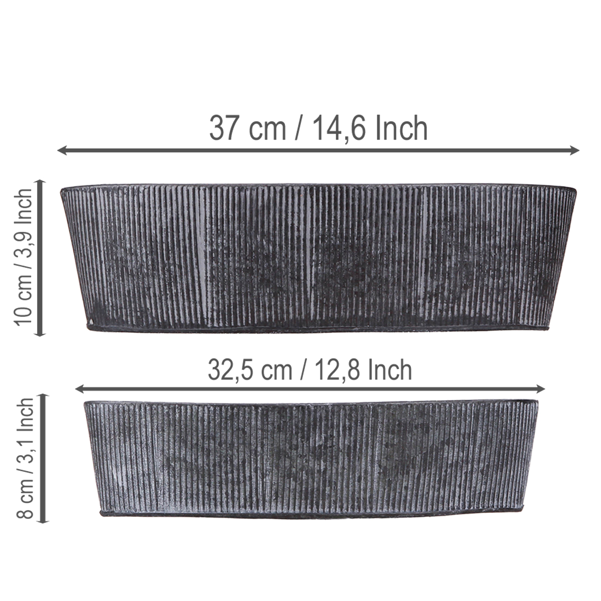 This oval metal bowl in black combines stylish elegance with a charming vintage aesthetic that will enhance your home. Whether as an eye-catching decorative bowl, a nostalgic table centerpiece, or a rustic flower bowl, this set of two nestable metal bowls opens up numerous creative possibilities. The elegant black, washed-gray color scheme and the delicate grooved design harmonize perfectly with any shabby-chic or industrial-style interior. Use the bowls as planters and add a touch of greenery with houseplants or herbs. The smaller bowl is perfect for stylish key storage or for succulents.