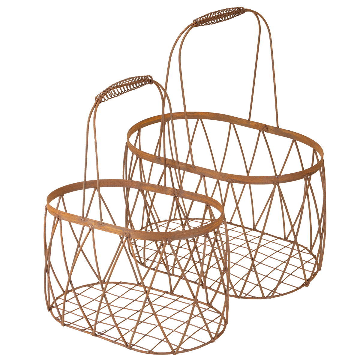 These wire baskets impress with their oval chic and airy design. Create a distinctive look in your garden with this set of two wire baskets that harmoniously combine tradition and modernity. Ideal for decorators and florists, these baskets with their rusty surface set accents in any environment.
