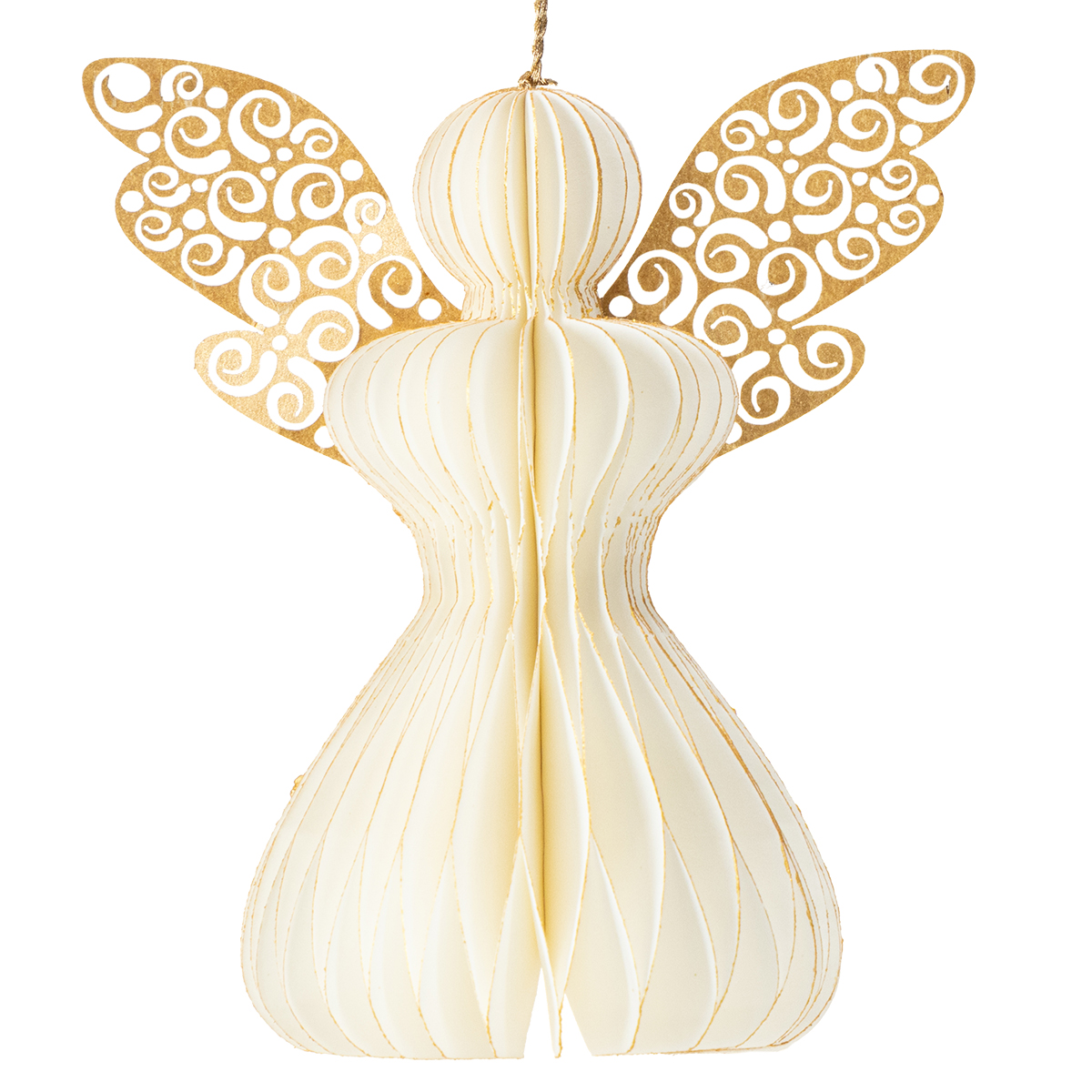 Product name: Paper Angel Tree Ornaments, Angel Pendants, White and Gold, 12cm, 4 Pieces