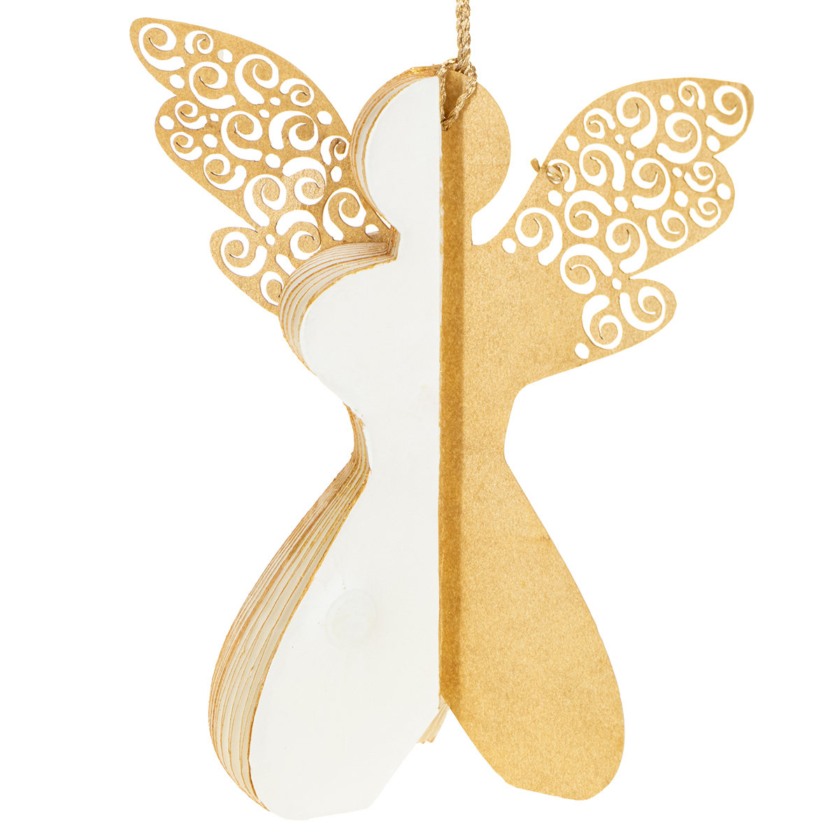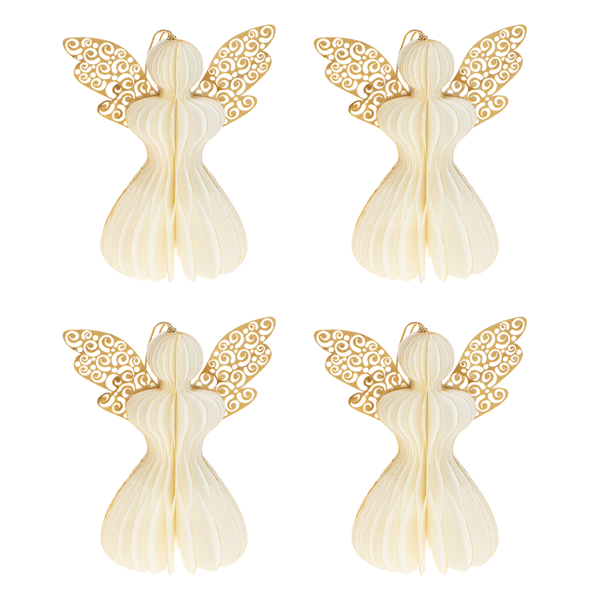Paper Angel Tree Ornaments, Angel Pendants, White and Gold, 12cm, 4 Pieces