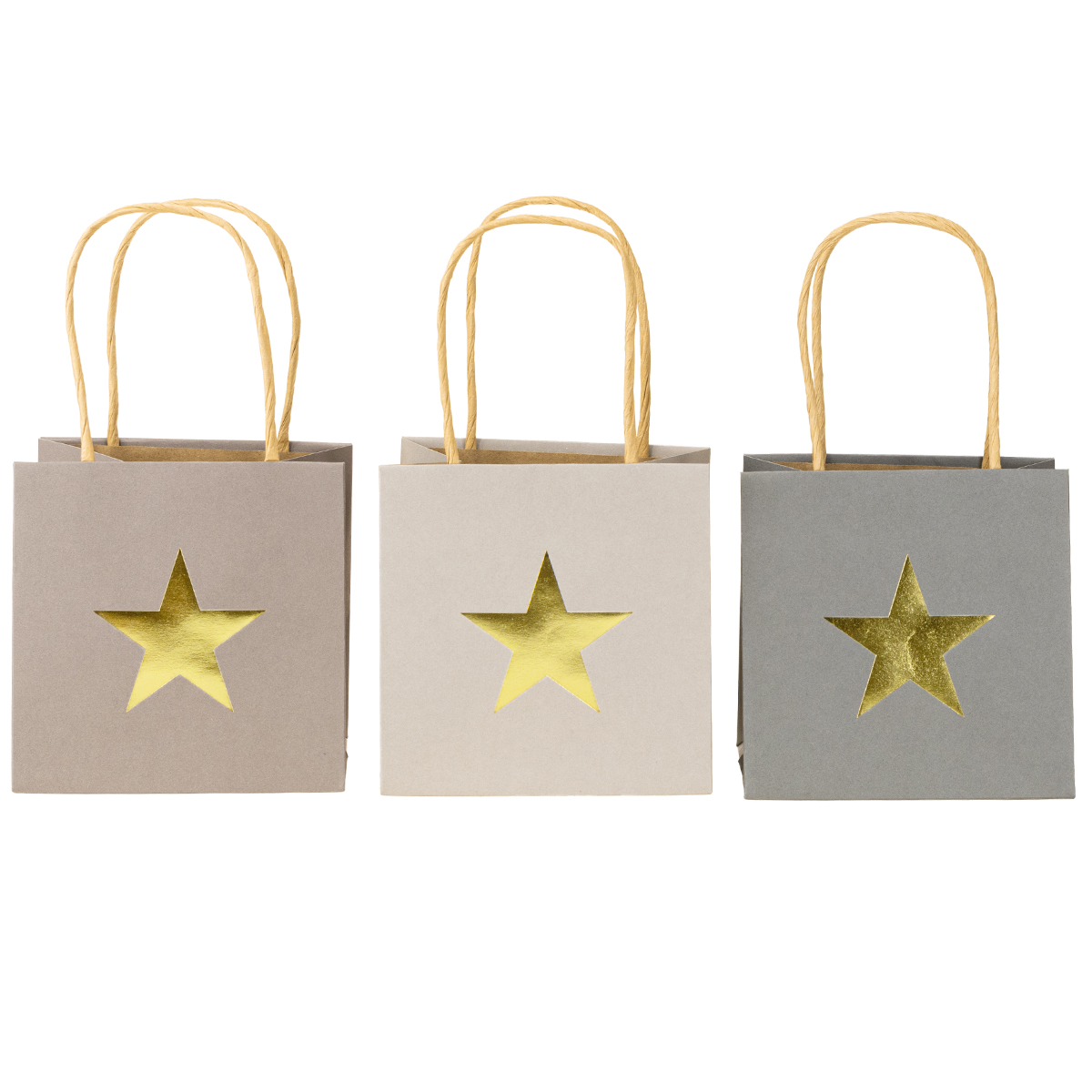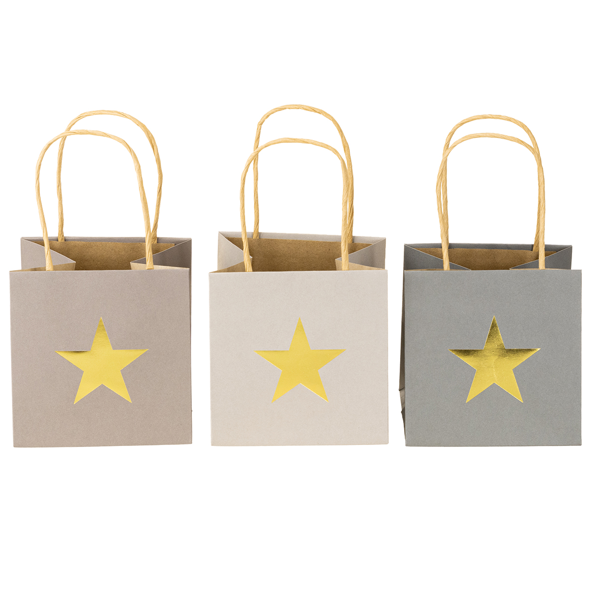 Paper bags with star and handle gray assorted 10.5×10.5cm 9pcs