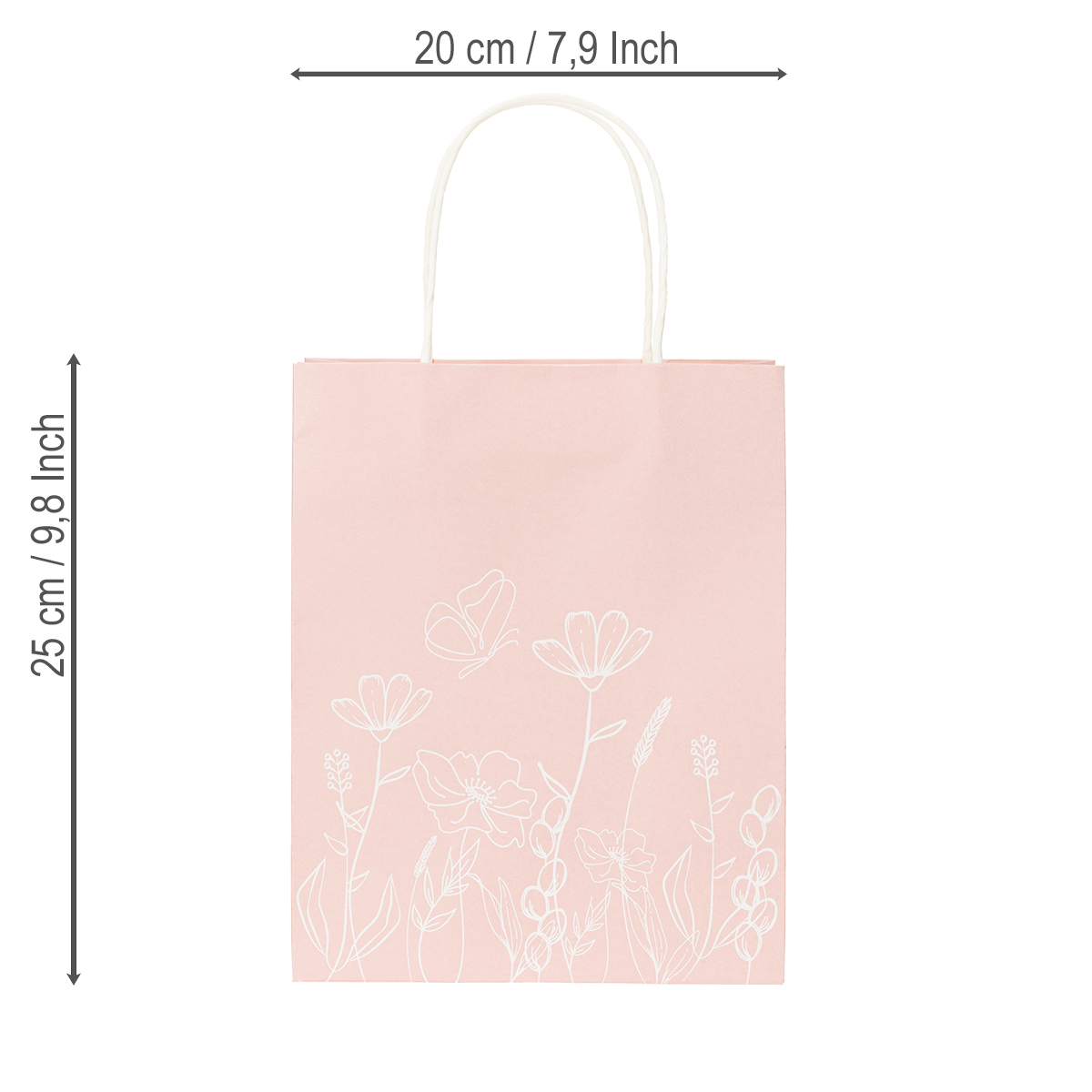 The floral design, subtly printed on the bags, is particularly noteworthy. It lends the bags a touch of elegance and freshness – perfect for spring festivals, summer birthdays, or romantic occasions. Those who value sustainability will also be impressed: the bags are made of paper, making them an environmentally friendly alternative to plastic packaging. The practical carrying handles make them easy to use and ensure stylish transport of the packaged surprise.