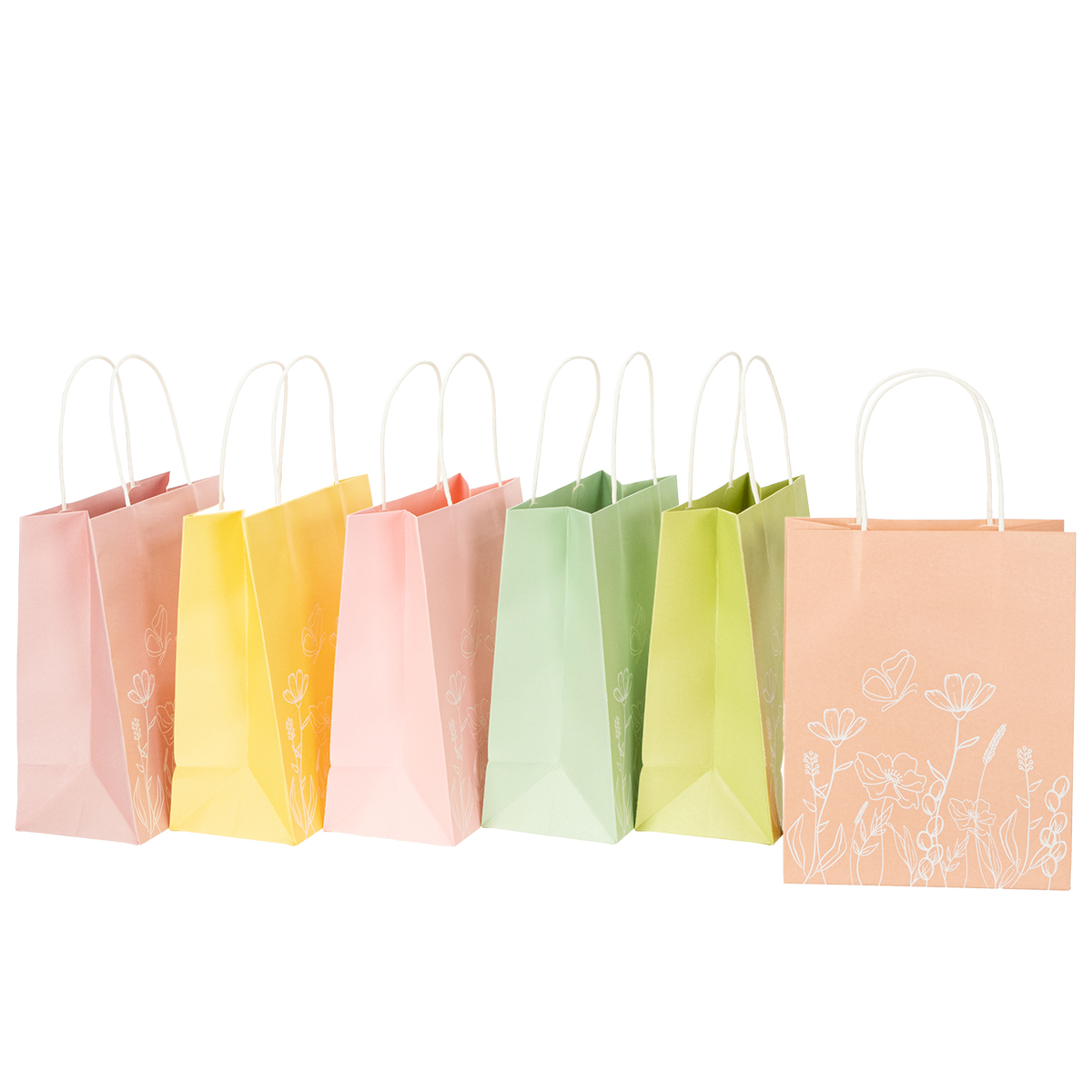Looking for a charming and practical way to attractively package small gifts or special little somethings? Our paper gift bags are the ideal solution! With their fresh and cheerful colors – yellow, orange, green, and pink – they instantly brighten anyone's day and are perfect for birthdays, parties, or simply to bring joy to a loved one. Who says packaging has to be purely functional? Here, function meets style! The floral motifs give the bags a playful yet elegant touch that will delight both children and adults. Whether used as gift wrapping, a lovely little present, or for small surprises, these paper gift bags are versatile and environmentally friendly. Ideal for anyone who values a thoughtful and sustainable approach.