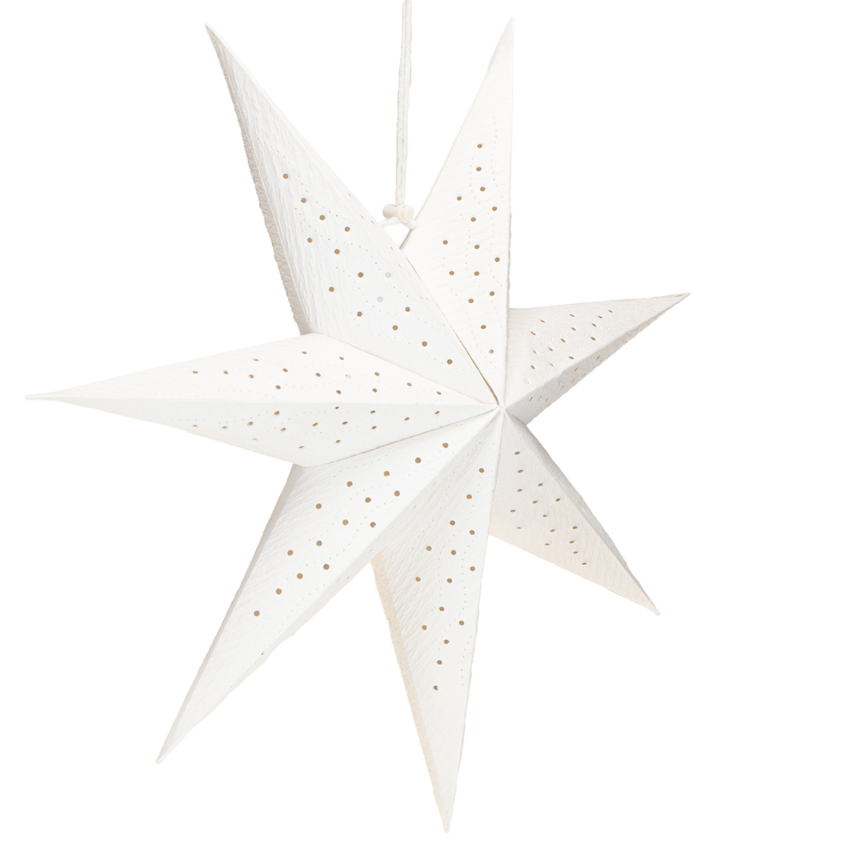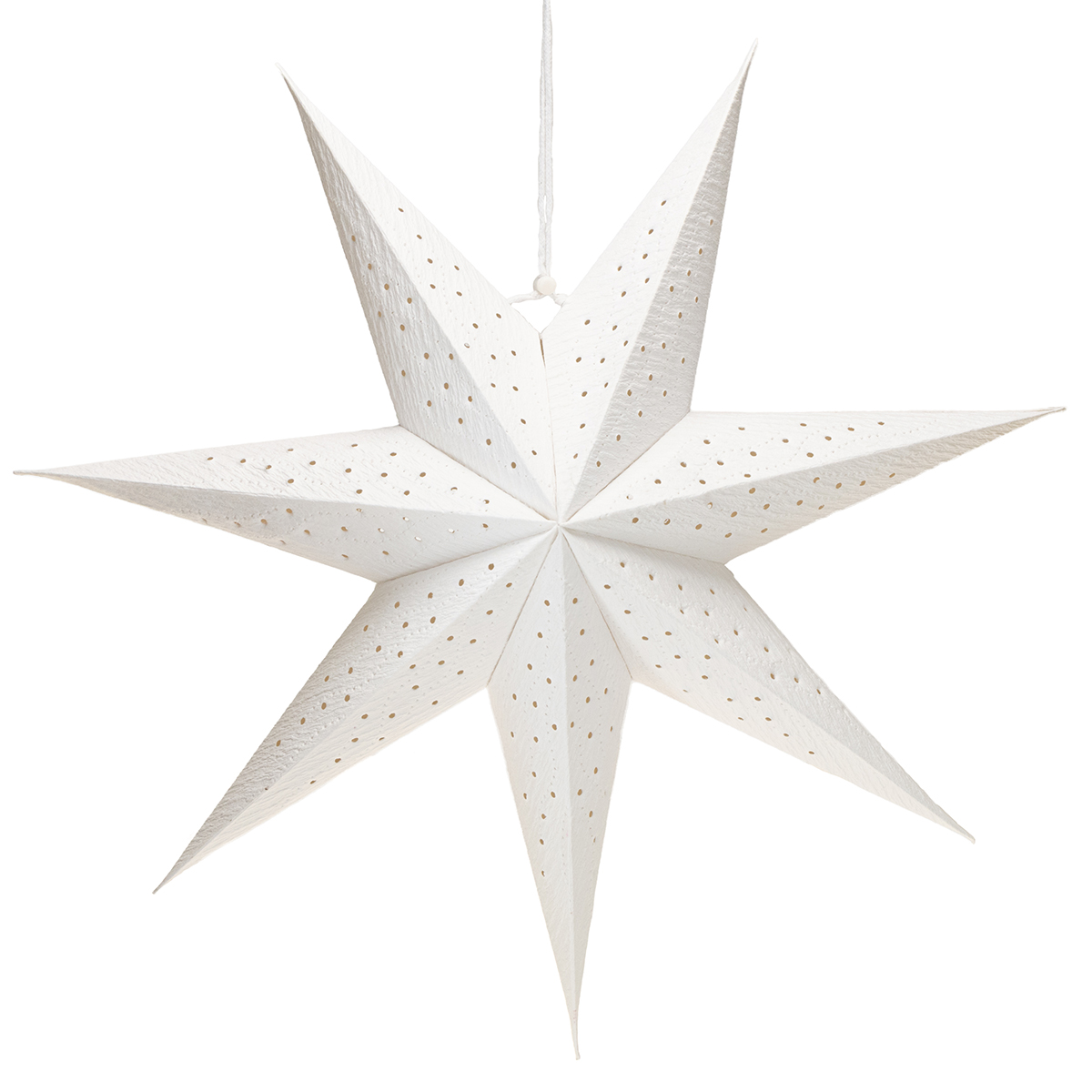 These paper stars impress not only with their attractive design but also with their thoughtful details. Made from sturdy paper, they are durable enough to grace your Christmas decorations year after year. At 45 cm in size, they look stunning in a window, but can also be used as elegant lighting above the dining table or as unique tree ornaments. Those who prefer a simpler, more natural look will love the white stars. They harmonize beautifully with fir branches, snow-covered artificial plants, understated Christmas baubles, or other paper decorations.