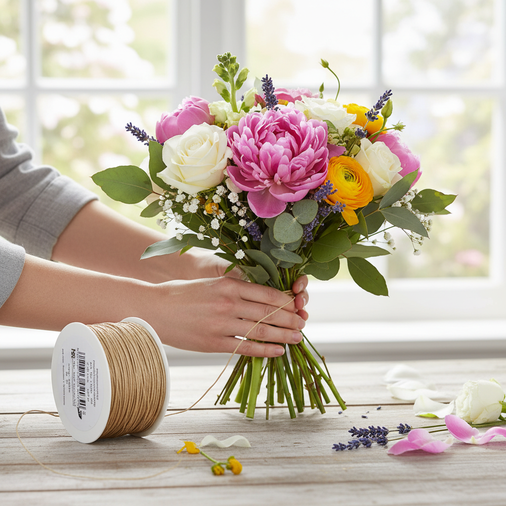 This paper wire, which, as the name suggests, is made of metal wire wrapped in natural paper, is a real all-rounder: The thin, flexible and dimensionally stable wire cord can be used for various decoration, design and craft projects! Cut the paper wrapping wire, which does not fray, with a sharp pair of scissors to the desired length and use it to tie and stabilize flowers and accessories in your workpieces or as a practical vine wire, which fixes vines or climbing plants on a trellis. In addition, flower pots and vases can be decoratively wrapped with the paper cord and hang pictures and figures on the wire. The possibilities are endless!