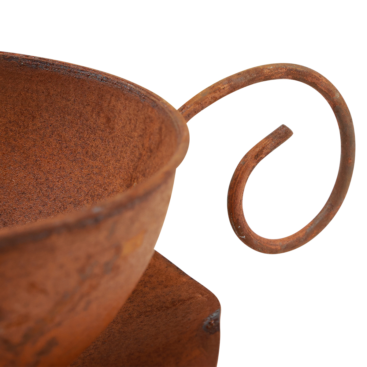But the garden decoration with a rust look can also be interpreted as a teacup with saucer. You will definitely gain an original balcony decoration or a table decoration for the patio table with the plant pot!