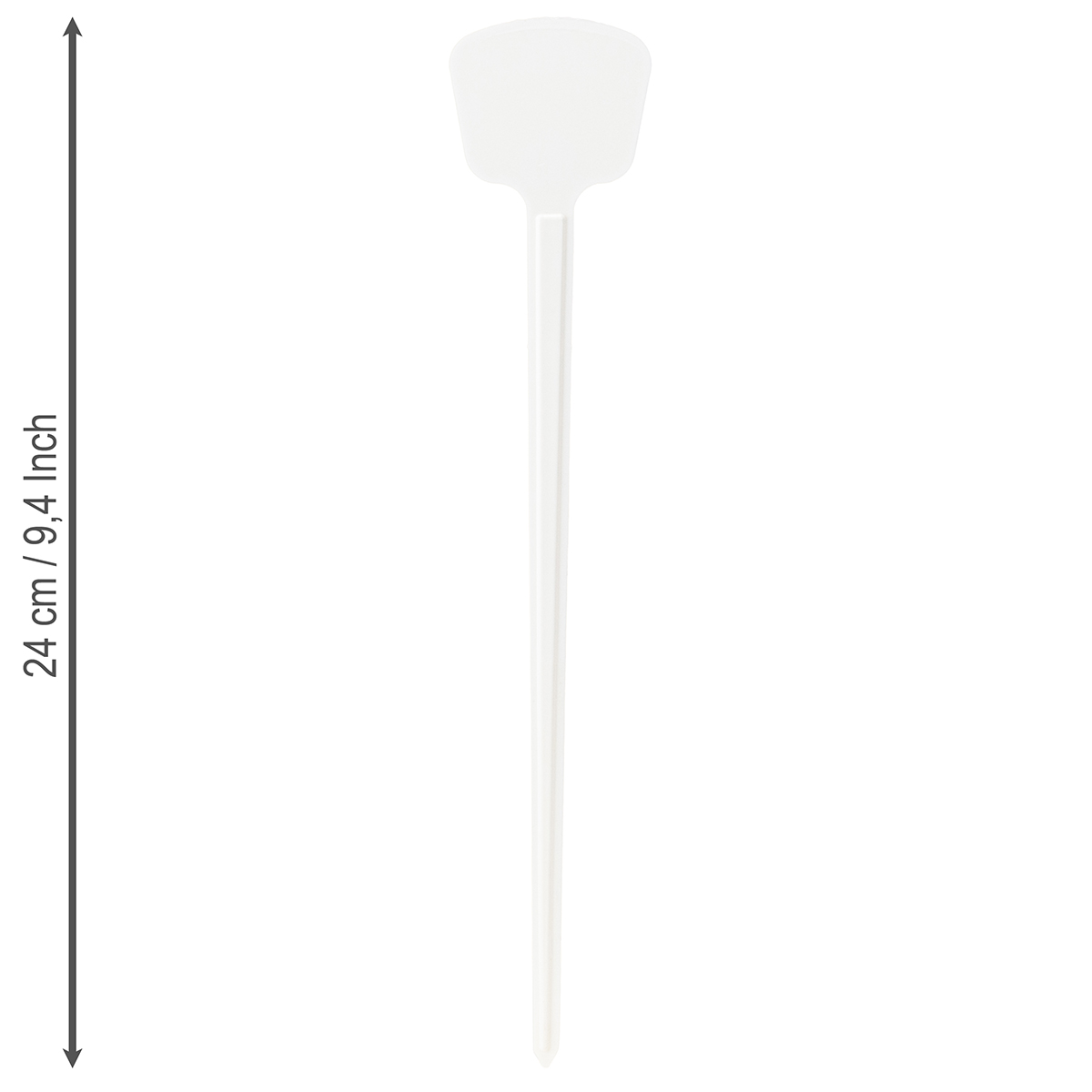 The plant label comes in a pack of 10 pieces to you. Each plant plug has a total length of about 28 centimeters; The rod is about 24 centimeters long, while the surface of the shield measures around 50 by 40 millimeters. Florists often use the plant accessories as a price tag.