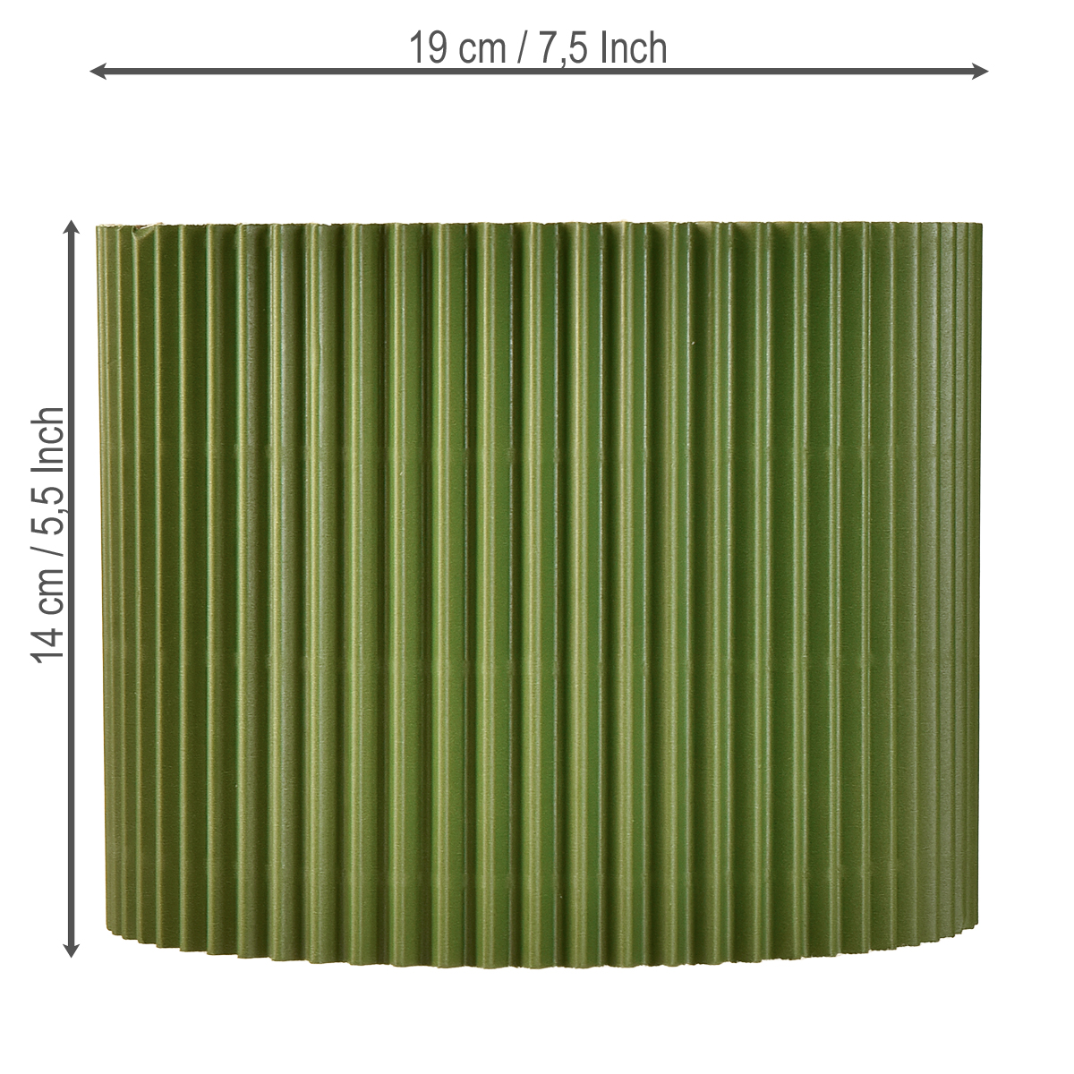 This elegant, dark green paper planter adds a decorative touch to any room. Measuring approximately 19 cm in diameter and approximately 14 cm in height, this flowerpot is ideal for medium-sized plant arrangements. The modern design with a ribbed exterior lends it an interesting texture. This makes the planter ideal for living rooms, offices, or as a creative gift. Please note that the planter should be lined with foil before using it with live plants to protect it from moisture. The flowerpot is perfect for decorative plant arrangements at home or for floral displays and shop windows.