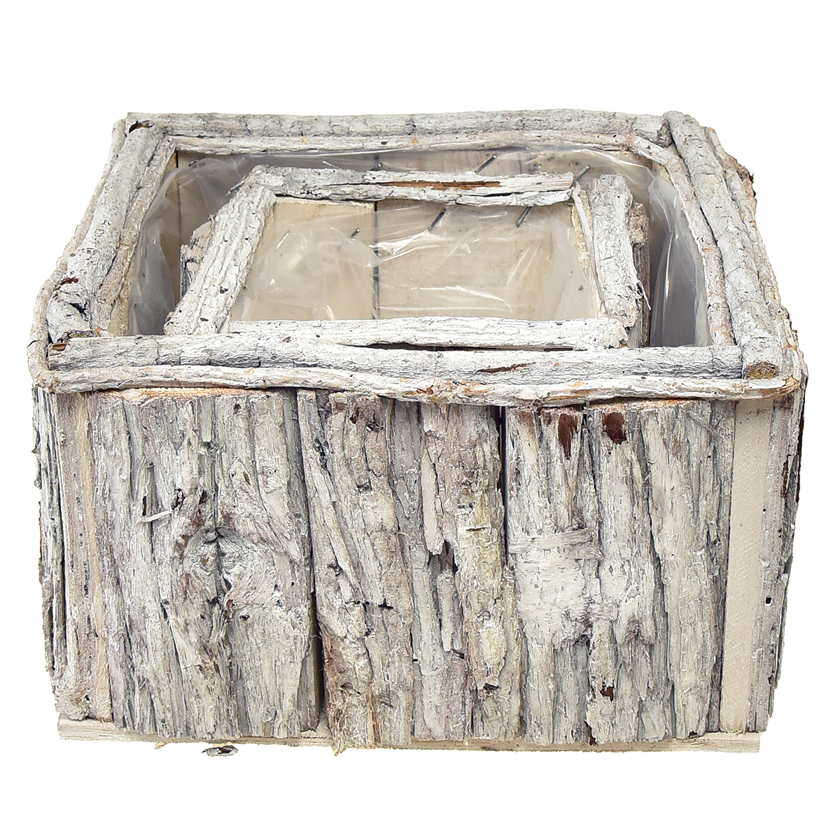 Planter Wood with Bark Natural White 17/24cm Set of 2