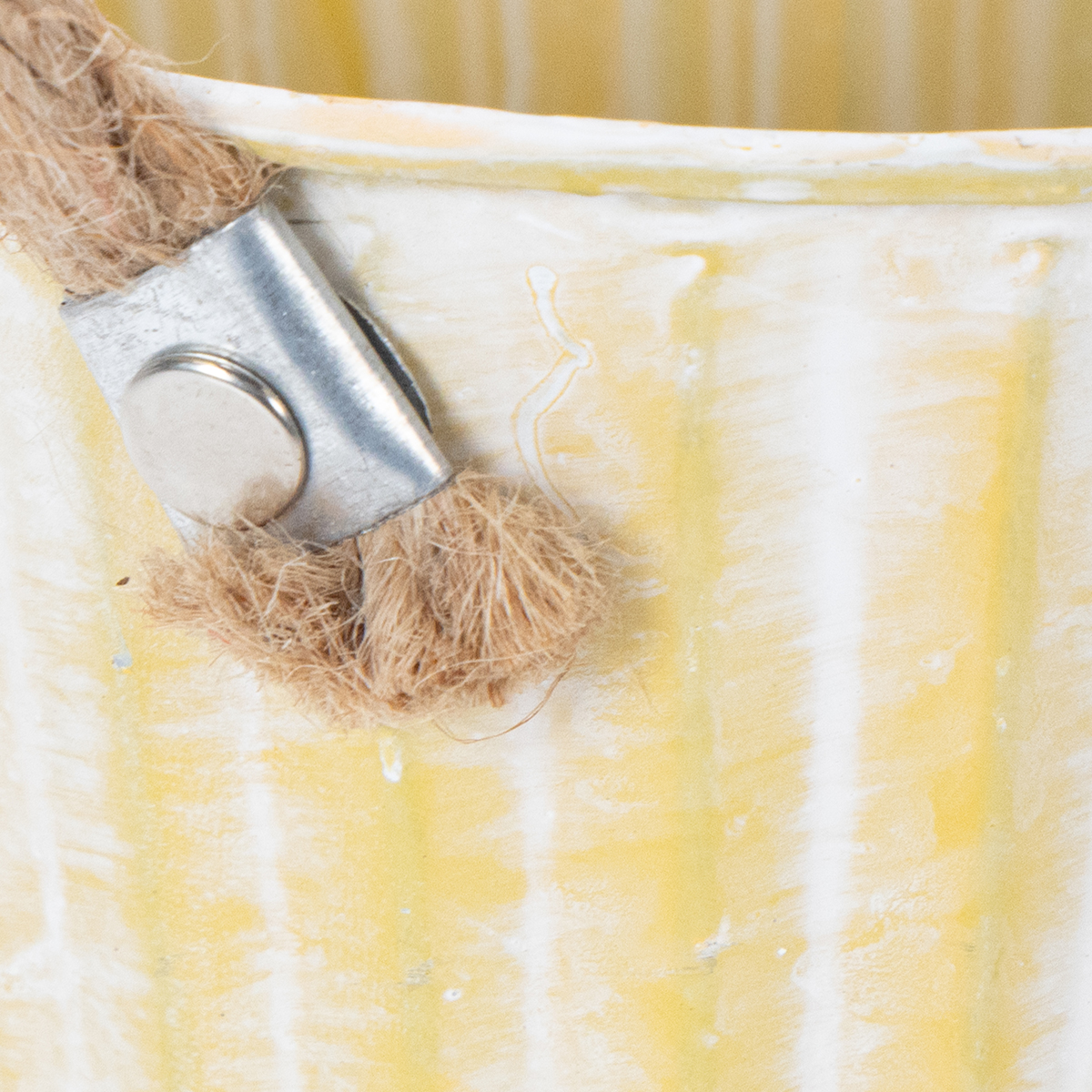 Planting bucket, metal pot with handles, decorative planter, pink/green/yellow, shabby chic, Ø12cm, H10cm, set of 3