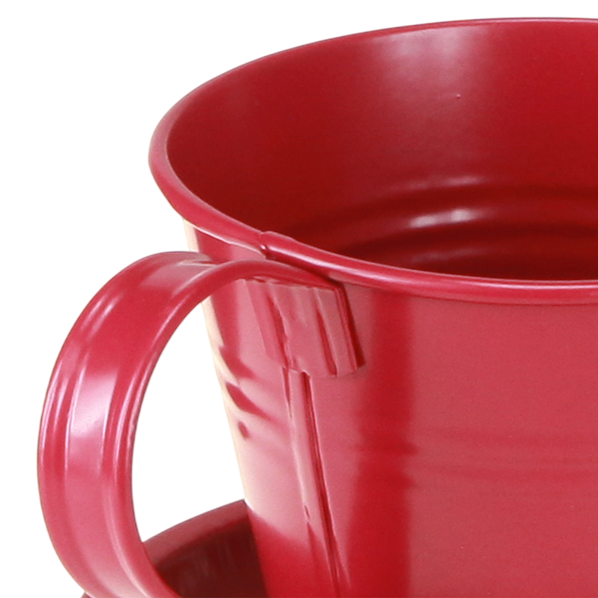 This set of six decorative metal cups brings not only color but also personality to your garden. Measuring 11 cm in diameter and 10 cm in height, and finished in a charming pink, these cups are the perfect size for plants like succulents, mini bonsai trees, or colorful flower arrangements. The combination of delicate pink and sturdy metal gives the cups a vintage touch that blends perfectly with boho or country-style decor. The included saucer not only protects your surfaces from water stains but also serves as an additional decorative element – practical and pretty at the same time! These cups are ideal for herb gardens on the windowsill or as mini flower pots on your desk. And for those with a creative bent, they can even be repurposed as holders for pens or craft supplies. Combine them with other floral decorative elements, such as colorful candle holders or delicate plant supports, for a harmonious overall look. These plant cup sets also make a delightful gift – especially for garden lovers or DIY enthusiasts.