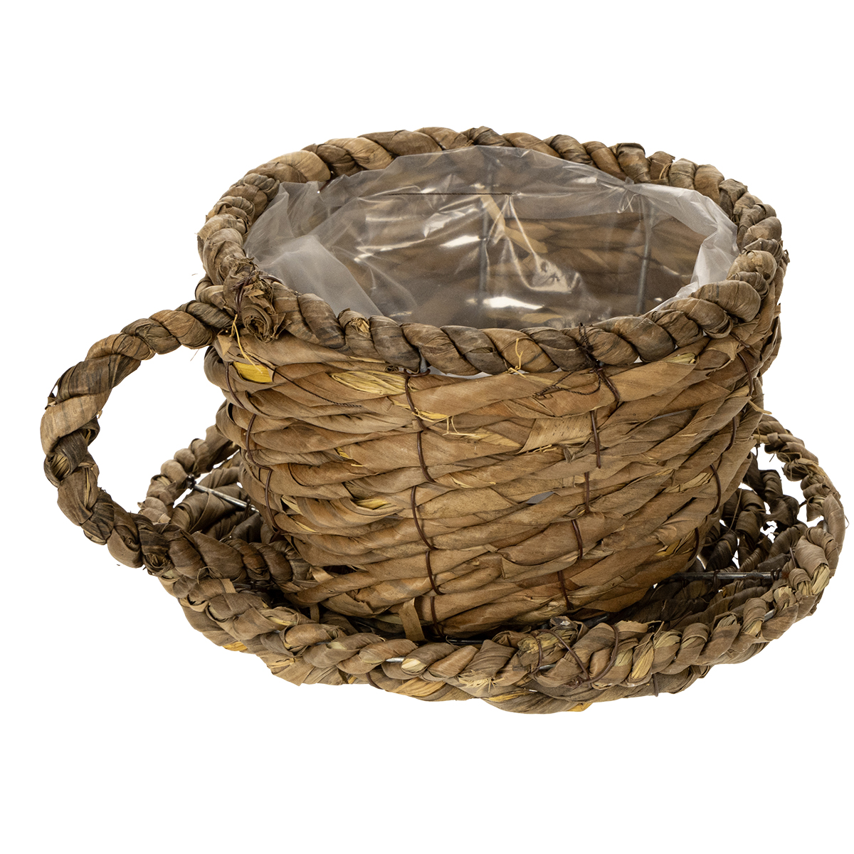 Planting cup with saucer, small straw planting basket, Ø17cm H13cm