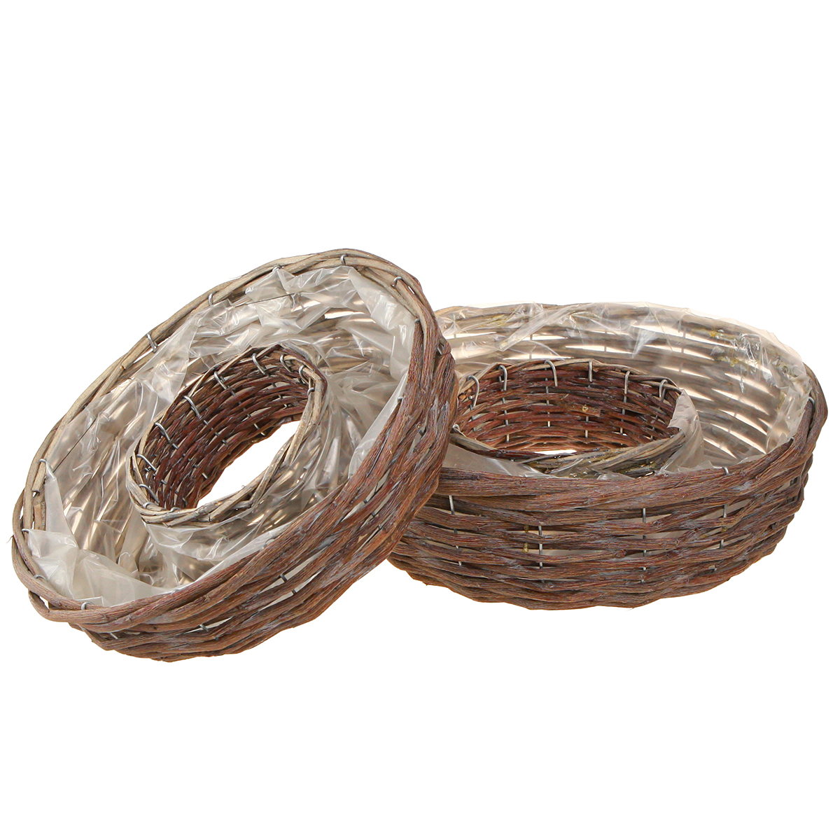 Give your balcony or terrace a rustic touch with the natural wooden plant rings. This exquisite set of two consists of two plant rings of different sizes, made from high-quality rattan and washed grey. The combination of natural wood and the sturdy metal frame inside not only ensures an attractive appearance, but also durability. The inside of the plant bowls is lined with a film that allows for immediate planting. Whether as an impressive decoration for spring and summer or as a stylish base for your personal Advent wreath - the possible uses are varied. We recommend using a drainage system made of expanded clay or gravel to avoid waterlogging and to provide your plants with optimal water. With a diameter of around 30cm and 35cm, they are perfect for small and large plant arrangements.