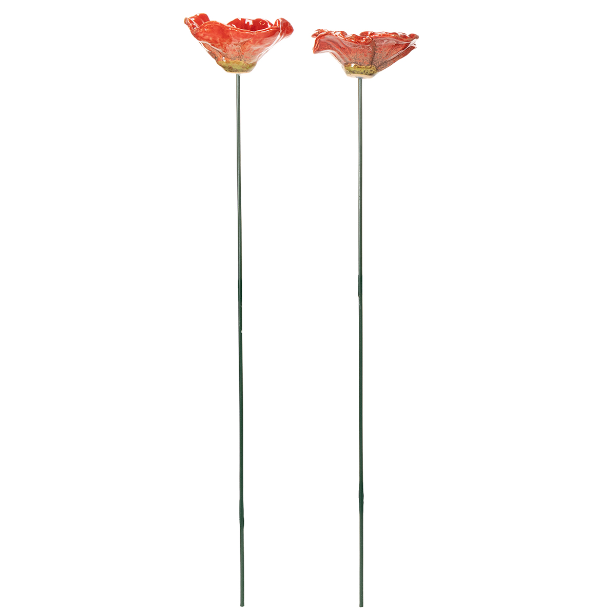 These poppy garden stakes are made of high-quality ceramic and impress with their detailed and meticulous craftsmanship. The vibrant, luminous red blossoms, with a natural diameter of 8 cm, are guaranteed to catch the eye. Standing 42 cm tall, these ceramic stakes integrate perfectly into flowerbeds, borders, or larger containers. The delicate flower shapes offer versatile uses, whether as a sophisticated contrast to greenery or as a harmonious addition to your existing floral arrangement.