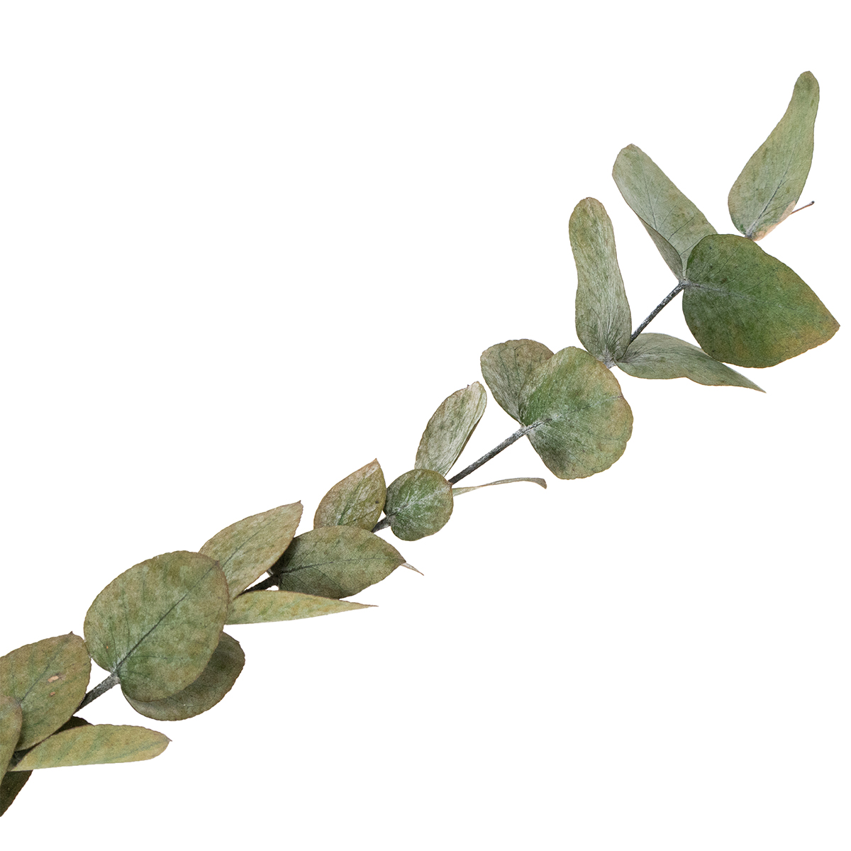 The preserved eucalyptus, with its green leaves clinging to the branches, looks as if it were just picked from the tree! A gentle process has preserved the natural appearance of the decorative branch. The leaves of this eucalyptus plant are dark green with the typical whitish sheen – simply gorgeous, timelessly modern dried flower decoration!