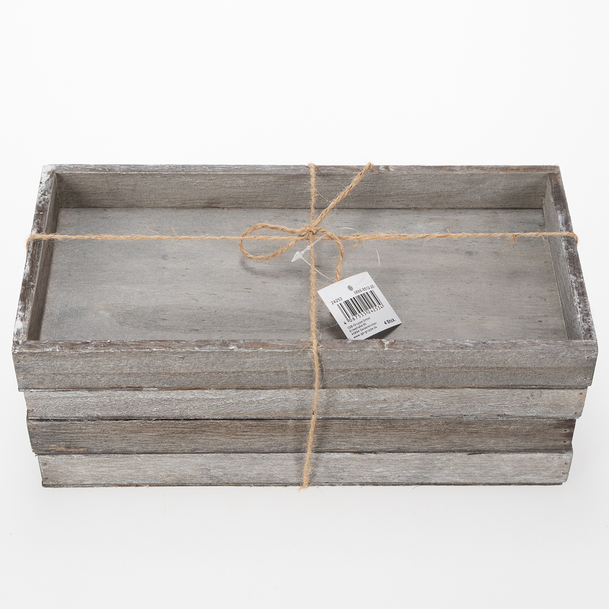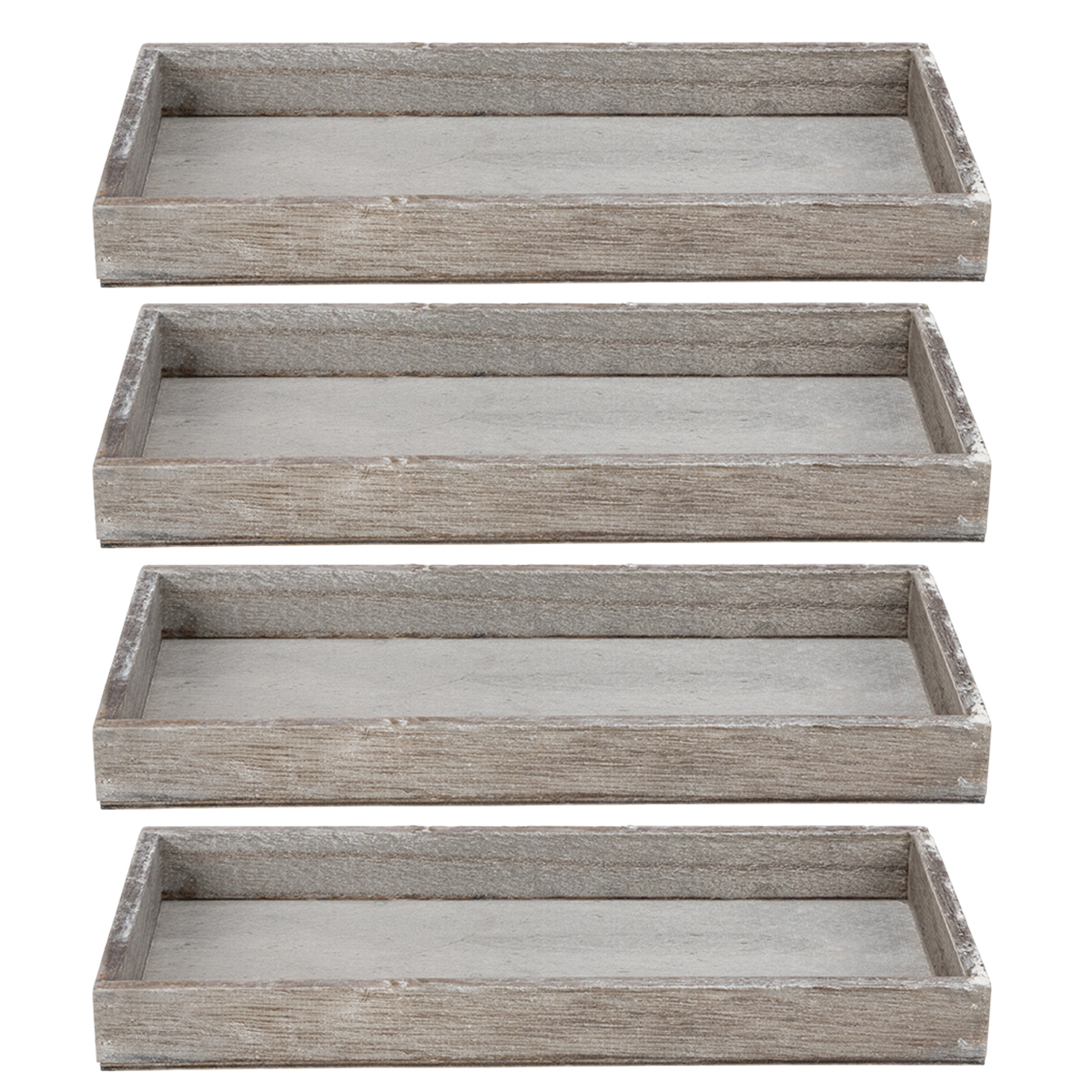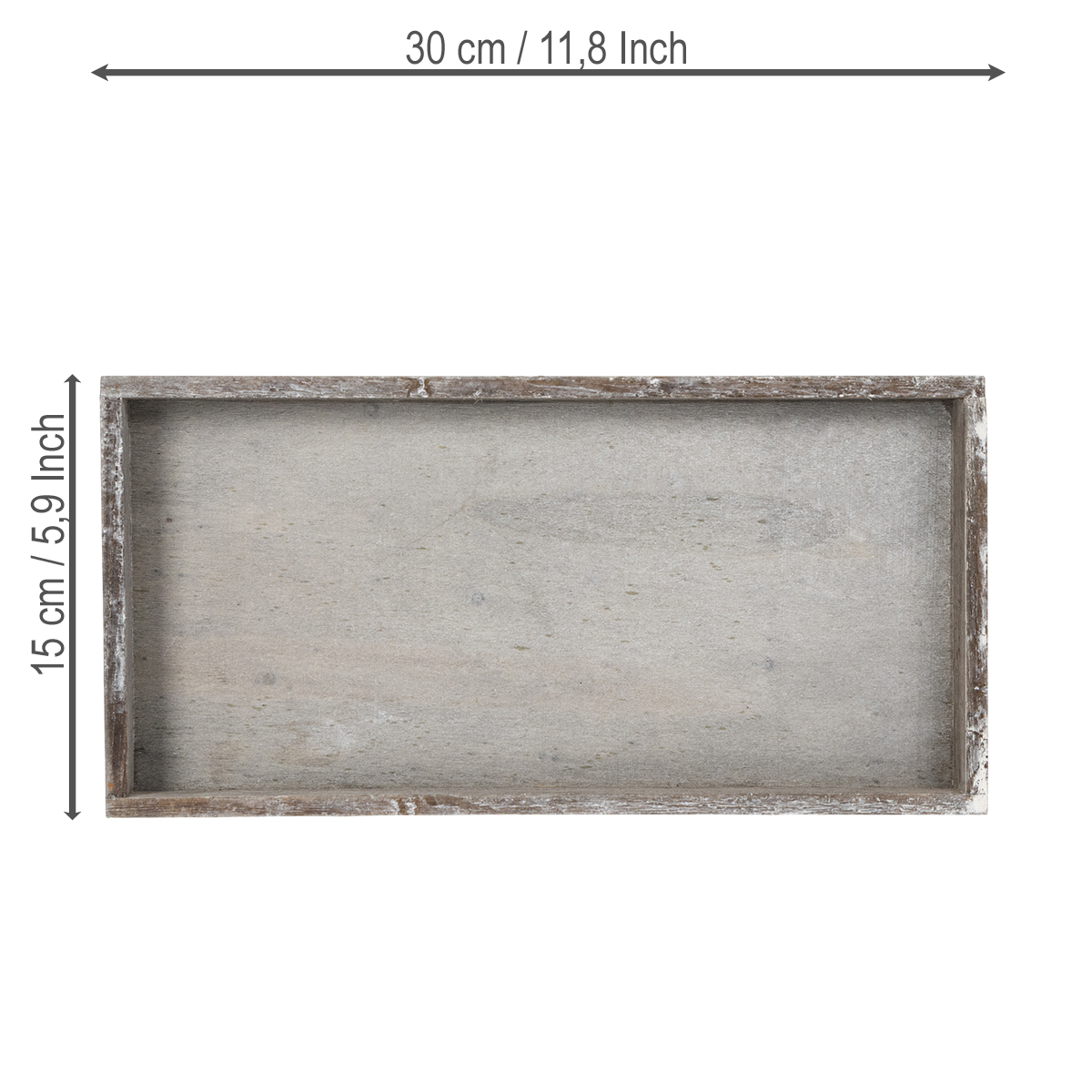Who hasn't been there? You arrange a pretty decoration, serve snacks, or look for a practical organizational solution – and in the end, that certain "something" is missing, the one thing that ties everything together. That's where our rustic wooden tray comes in! With its rectangular shape, natural gray color, and dimensions of 30 x 15 x 3 cm, it's not only a functional highlight but also a real eye-catcher. Whether in the kitchen, living room, or even the bathroom: this wooden tray keeps things tidy and gives your rooms an authentic vintage touch. Perfect for lovers of country style or modern minimalism! A little tip: Imagine arranging candles on the tray, perhaps with some dried flowers or herbs. Sounds lovely? It is! And the best part: you get four trays in a set – giving you plenty of room to get creative in your home.