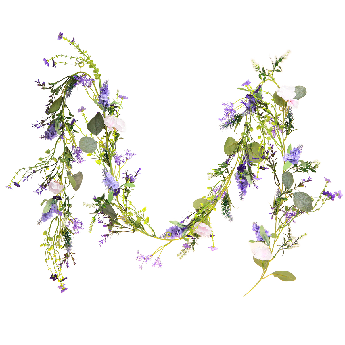 The lavender garland can be hung on the wall or over a door. A total of eleven small plastic rings per garland offer the practical option of attaching the artificial flower decoration to hooks or nails.