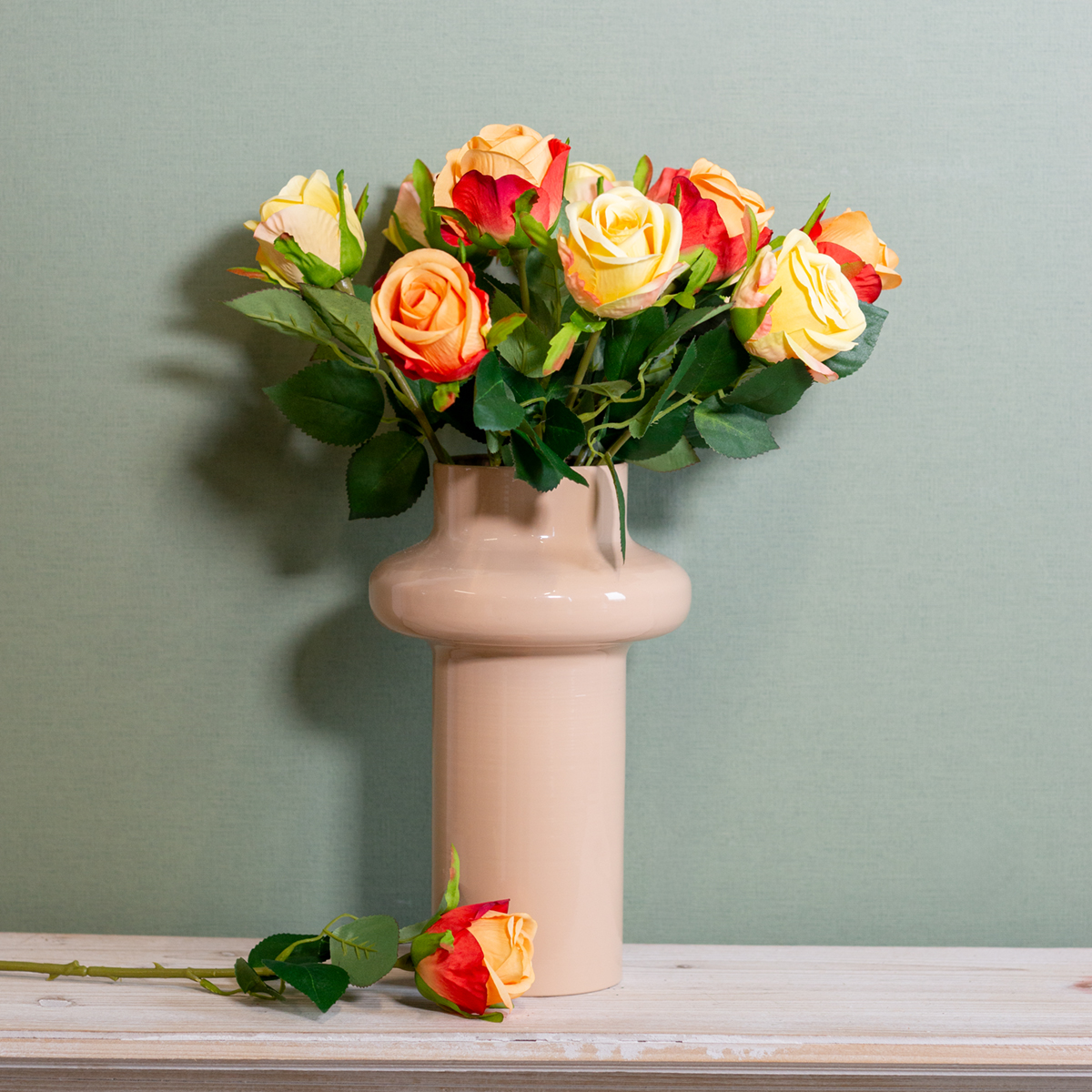 Who hasn't experienced this? A stylishly decorated living room, an inviting atmosphere at the dining table, or an elegant ambiance in the office – all with a touch of naturalness. But real flowers wilt quickly, and their care can be time-consuming. With our rose bouquet arrangement in radiant yellow, you bring the perfect combination of longevity and beauty into your home. Whether as an accent on the dining table or a highlight on the dresser, these decorative artificial flowers will brighten up any room. Are you looking for something that is low-maintenance, high-quality, and stylish? Then this artificial rose bouquet is the perfect choice!