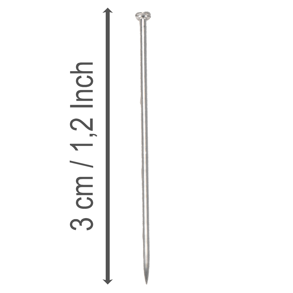 Our silver-colored pins with a length of around 30mm made of nickel-plated iron are the perfect choice for anyone looking for durable and versatile fastening elements. These pins not only impress with their high-quality workmanship, but also with their shiny, silver surface, which gives every project an elegant touch, but can also be hidden between branches and leaves thanks to the small head. Whether you are crafting, decorating or doing floristry work - these pins offer excellent grip. Since the nickel-plated pins are rust-proof, they are ideal for use indoors and outdoors. They are particularly used in floristry design, be it for creating flower arrangements or for creating and fixing flower arrangements. The large pack of 500g offers you enough pins for numerous projects, so that you can be creative at any time. Let the quality and versatility of these little helpers convince you!