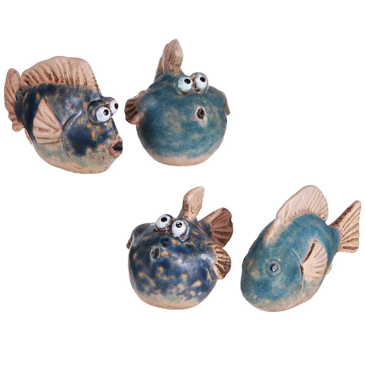 Small Fishes Funny Ceramic Decoration Blue Assorted 6-9cm 4 Pcs