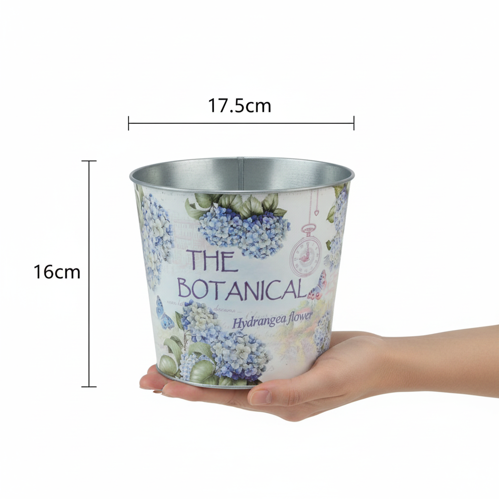 Small metal flower pot/planter for hydrangea, Ø17.5cm H16cm