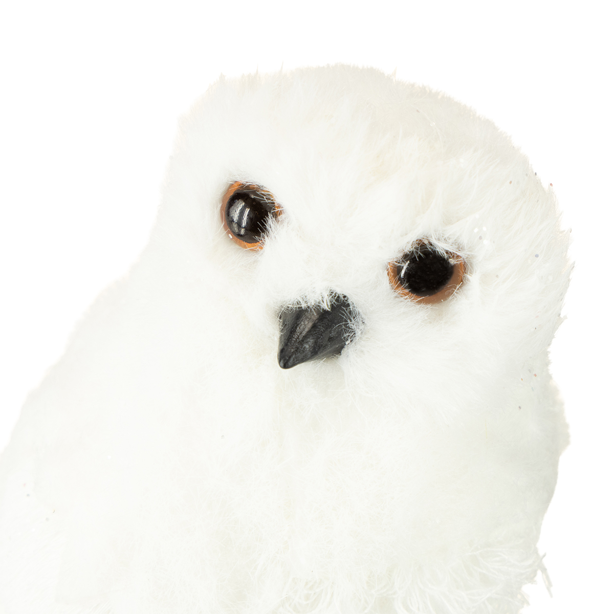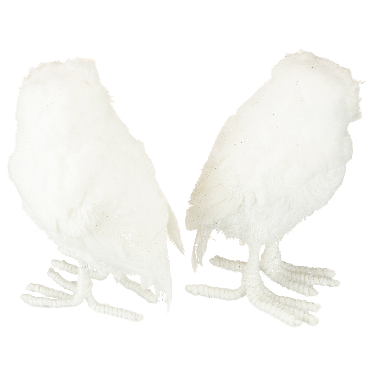 Snowy owl decorative owl white with fur and feathers 15.5cm 2pcs