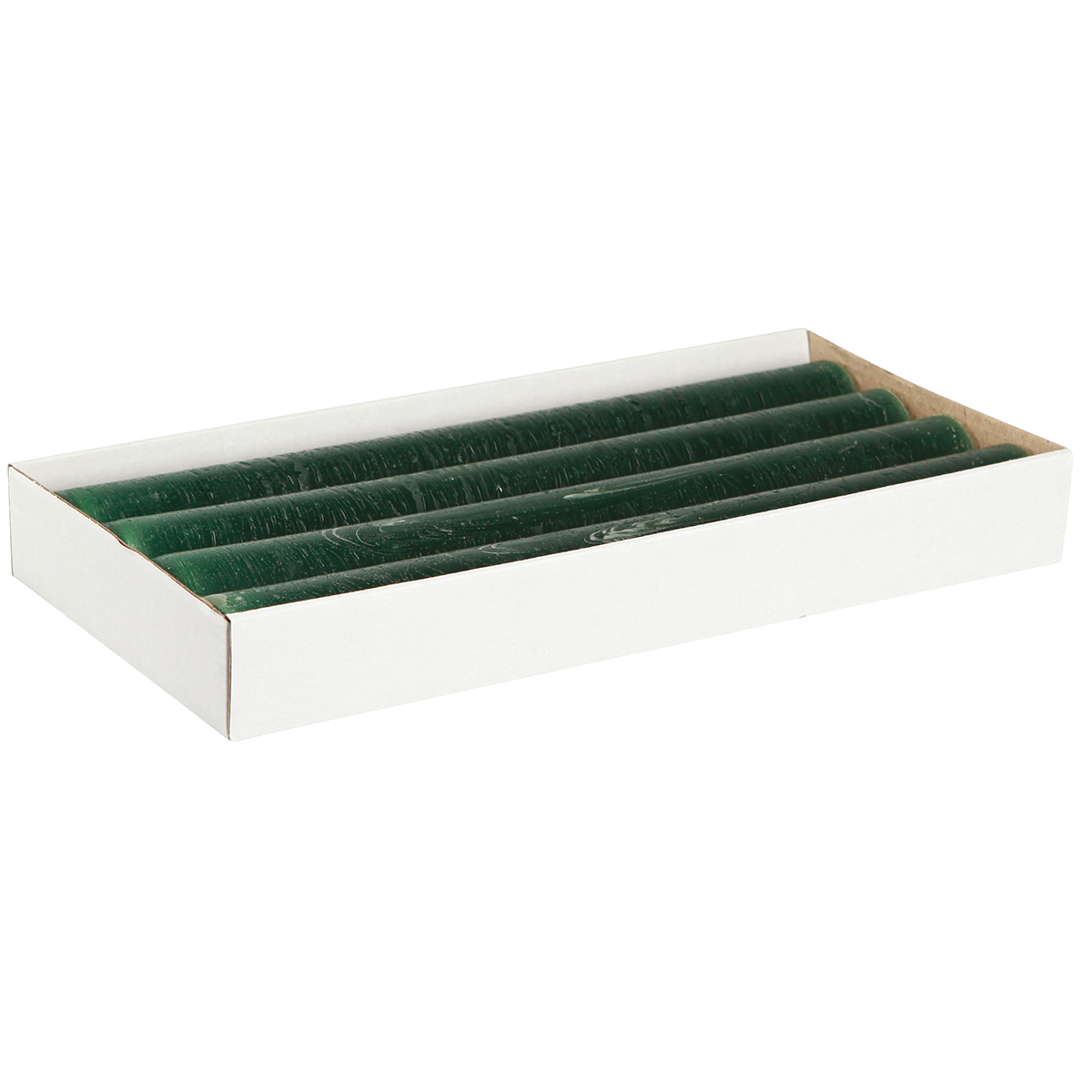 Get our large dark green taper candles in an attractive rustic look now and create a stylish decoration that will last a long time. Our candles are an asset to any occasion and give your home or event an elegant and cozy atmosphere.