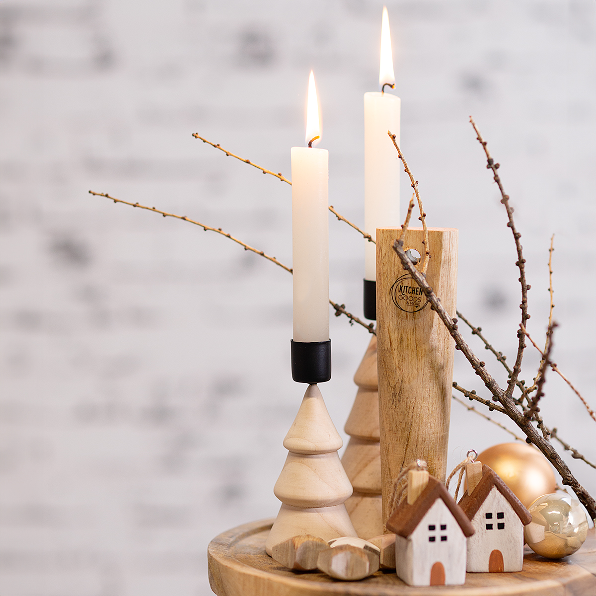 Stick candle holder wooden decoration Christmas tree natural H16cm 2 pcs