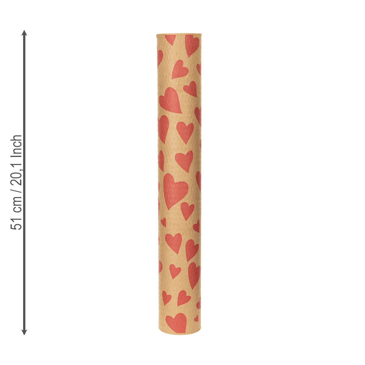 Our sustainable gift wrap in warm red and natural brown is much more than just simple packaging. Measuring 25 meters long and 51 centimeters wide, it offers enough material to wrap gifts of all sizes. The charming hearts combined with the natural paper color add a touch of romance and style to any present. Whether you're looking for creative gift wrapping for floral arrangements, DIY projects, or protective wrapping material – this paper is incredibly versatile!