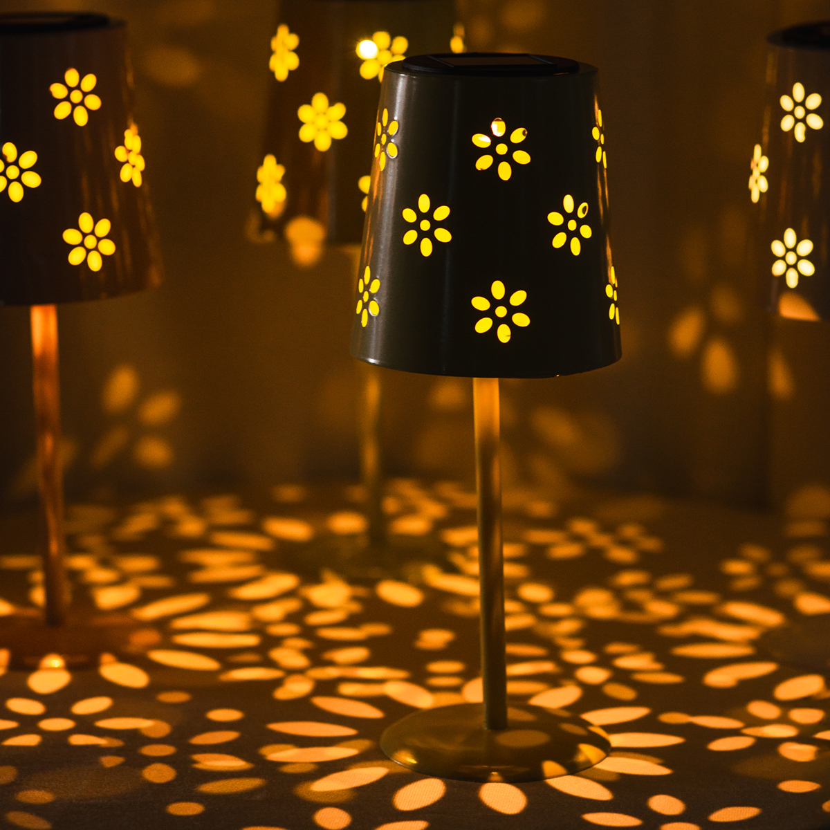 Table lamp with floral pattern, solar powered, for romantic garden lighting, 28cm