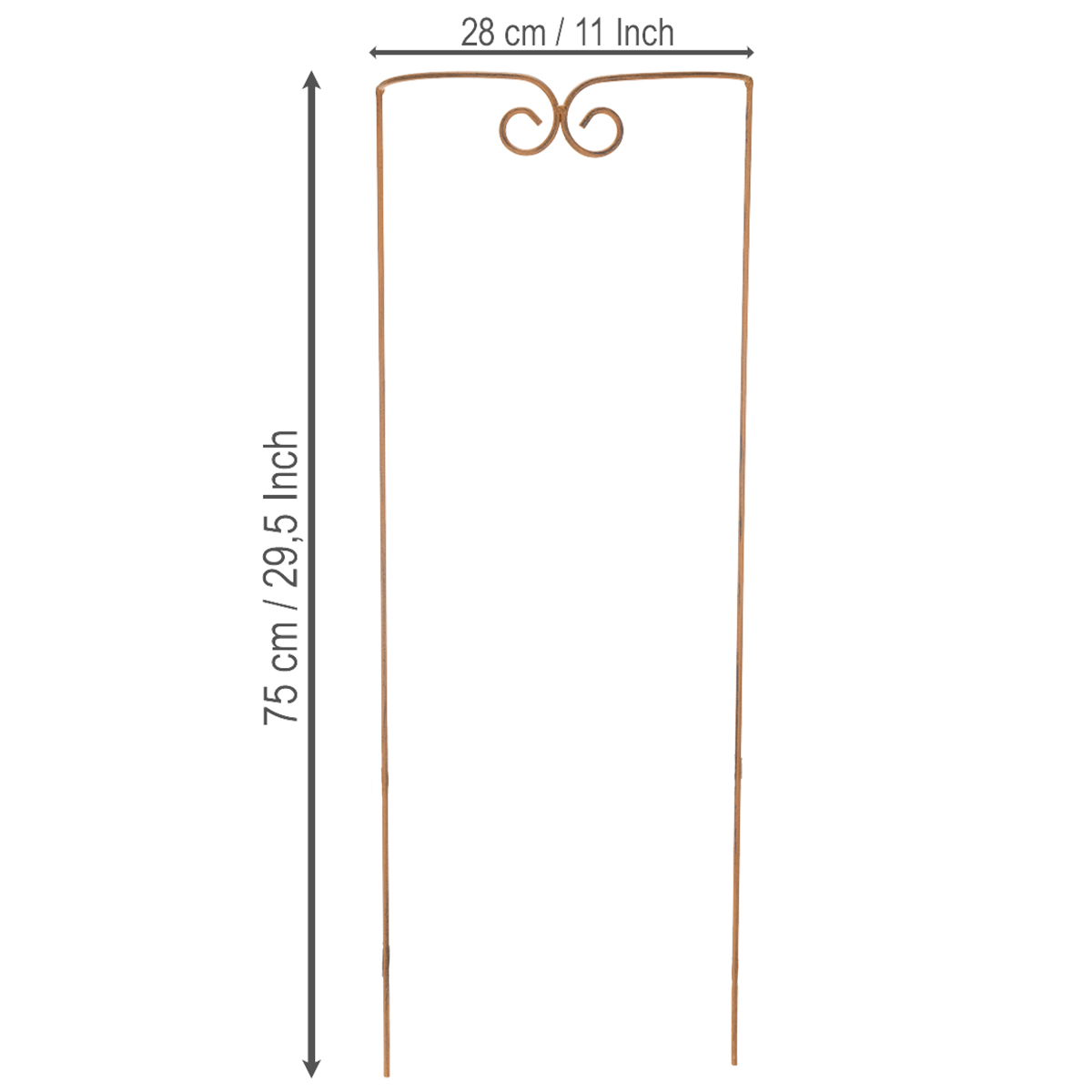 Give your garden or balcony the perfect finishing touch with our curved trellis made of high-quality metal! Whether used as a support for climbing plants or as a decorative element in flowerbeds, this trellis in classic brown impressively combines functionality and aesthetics. At 75 centimeters high and with a stylish design, it's the perfect choice to give your plants structure and support. Ideal for both flowerbeds and plant pots, this trellis will instantly enhance any outdoor space. Are you ready to transform your garden into a real eye-catcher?