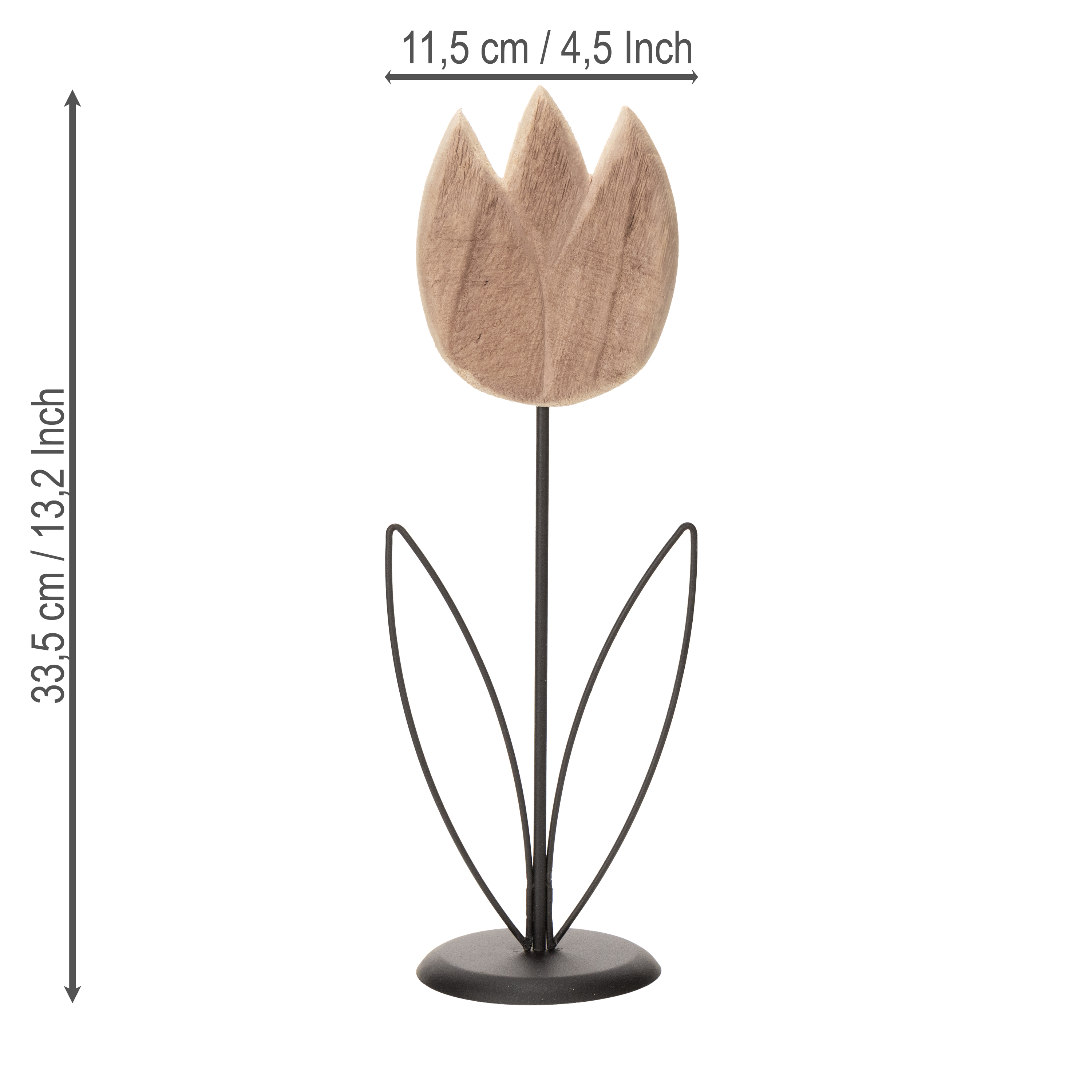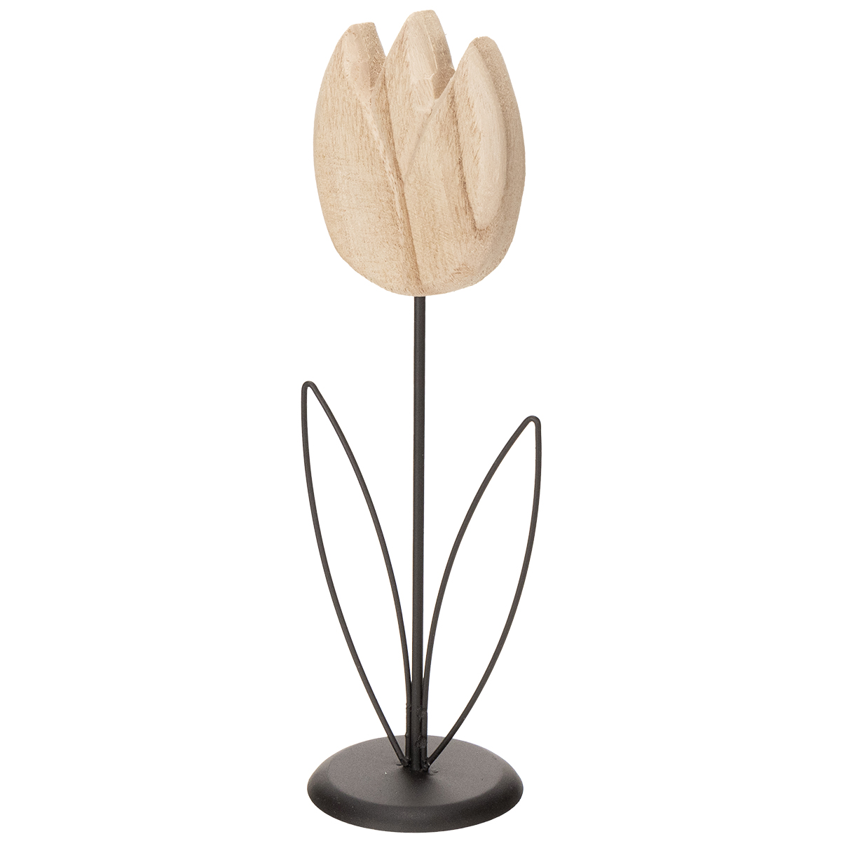 Have you ever considered how small details can transform the atmosphere of a room? This tulip decorative object on a stand is not only a real eye-catcher, but also brings a timeless elegance to your rooms. At 33.5 cm tall, it makes a particularly striking centerpiece on a windowsill, sideboard, or dresser – without being obtrusive. The artfully crafted wooden tulip head and the delicate metal stand create a charming combination of natural and modern elements. Looking for a fresh, stylish accent in your living room, dining area, or office? This decorative object has the potential to become your favorite highlight!