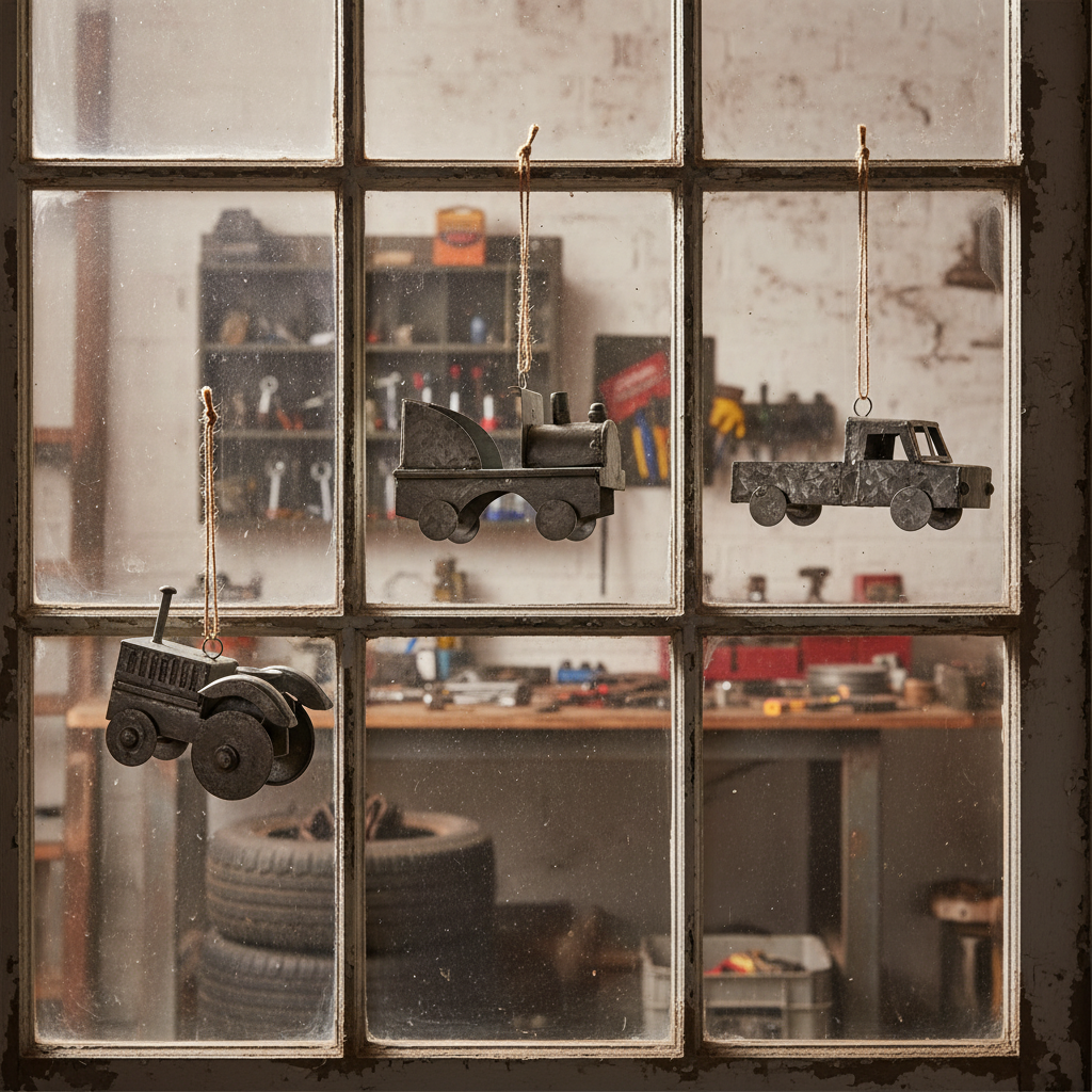 Vintage Decorative Metal Cars for Hanging, Assorted Sizes, 9-10cm, 4 Pieces