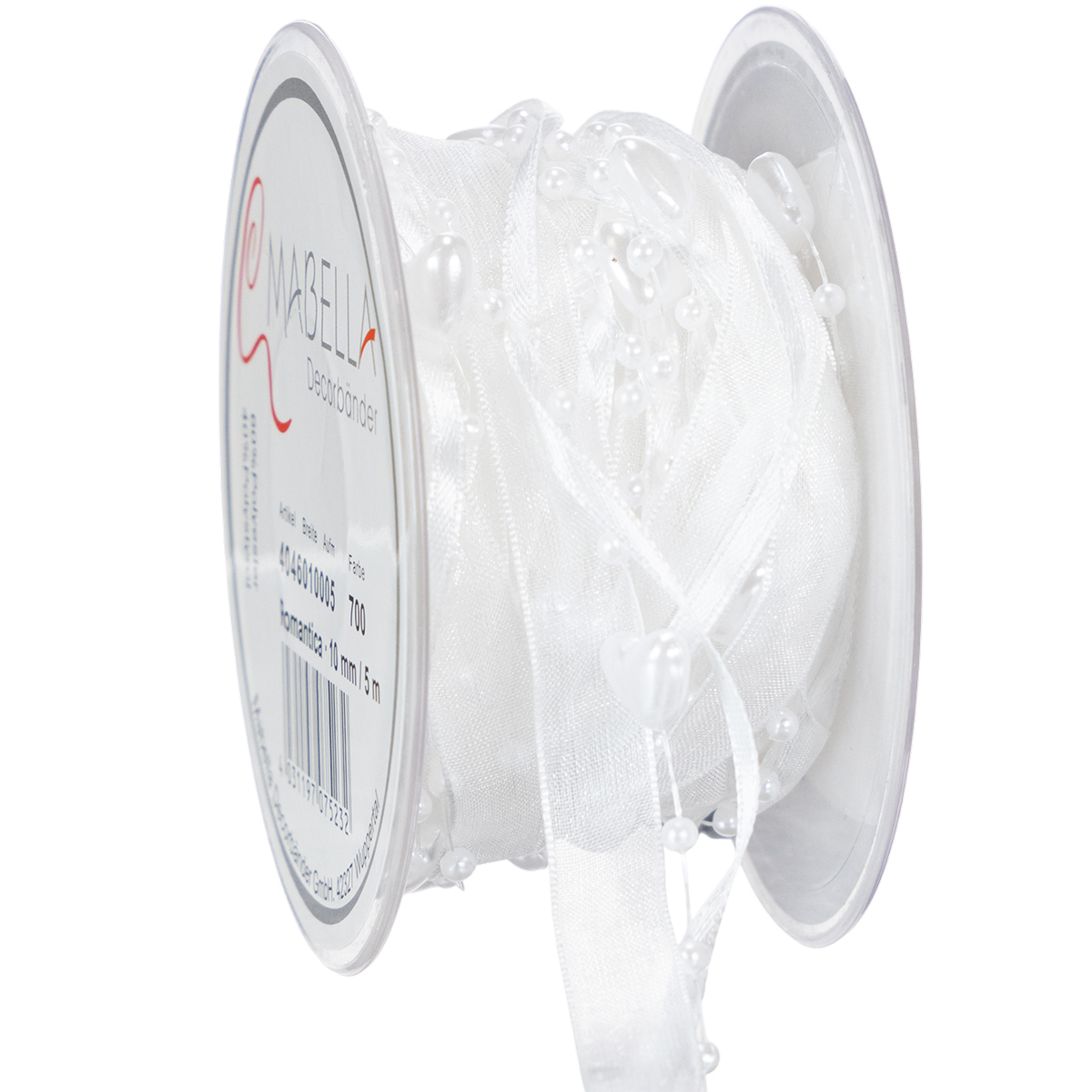 Product name: Wedding decoration organza ribbon white 10mm x 5m with hearts & pearls