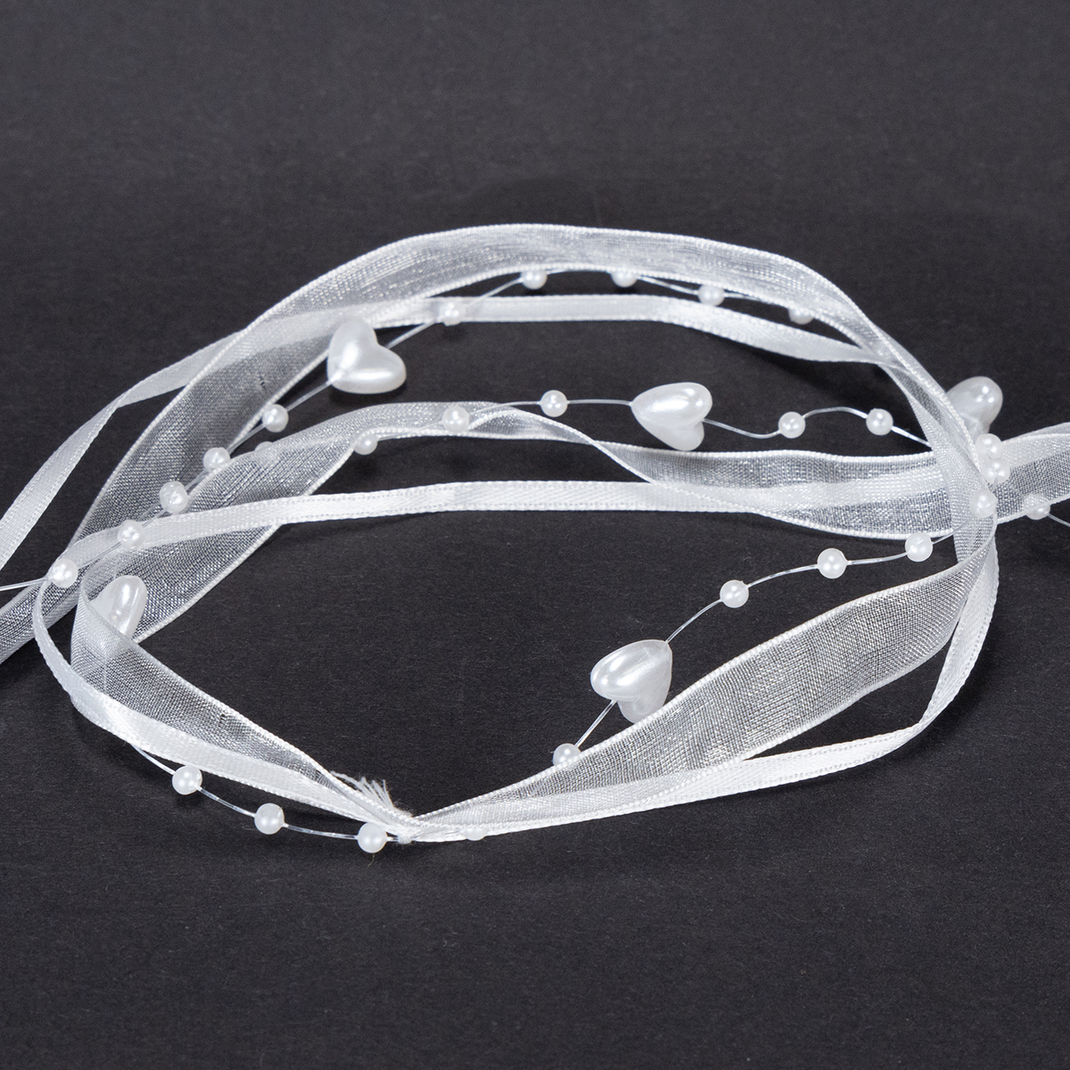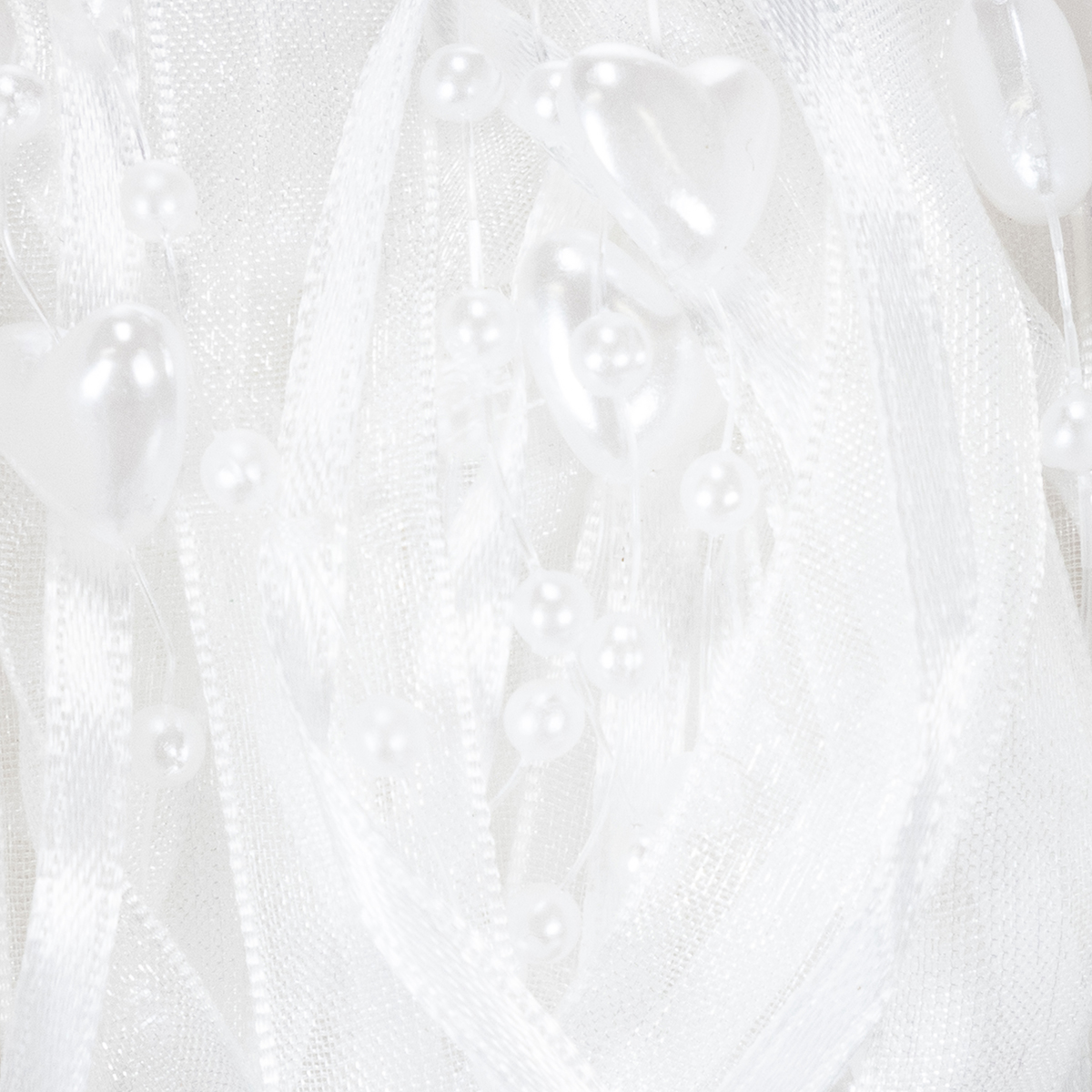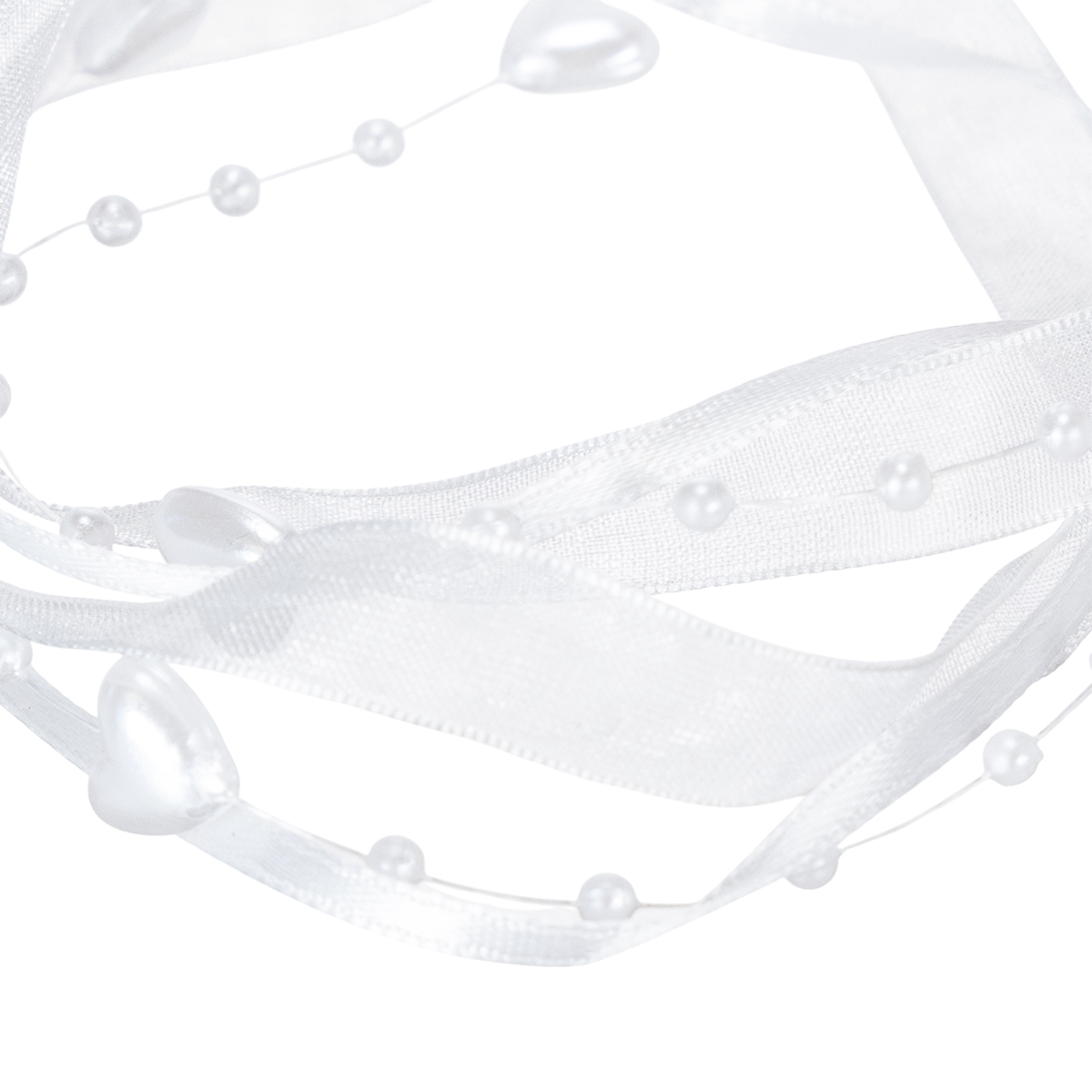Wedding decoration organza ribbon white 10mm x 5m with hearts & pearls