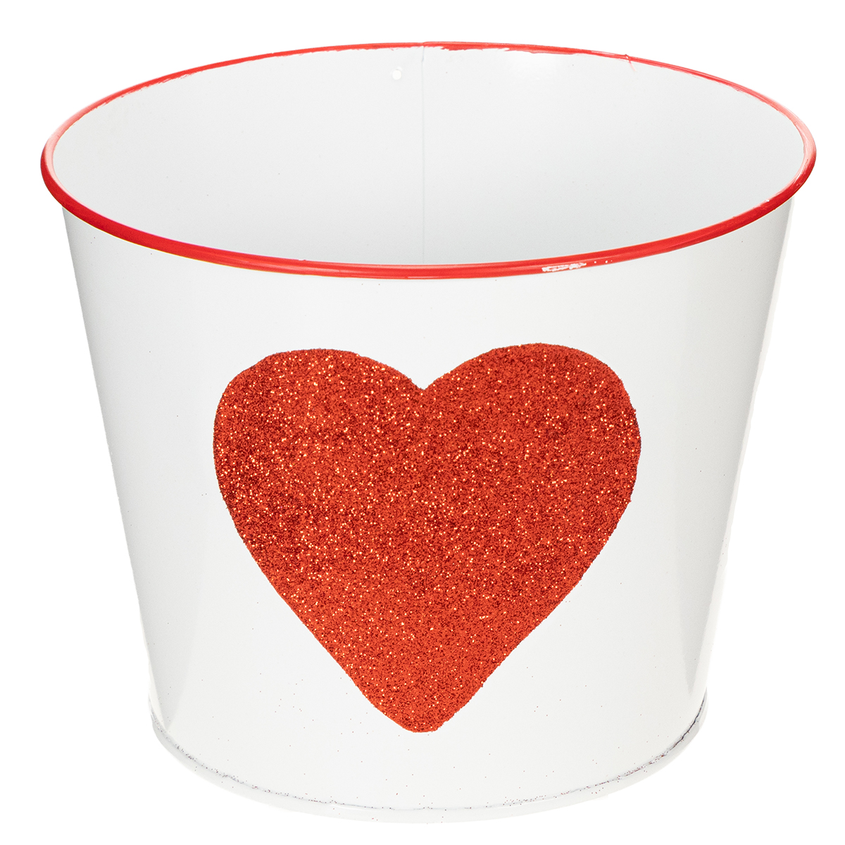 White flower pot with red heart, planter, Ø18cm H13.5cm