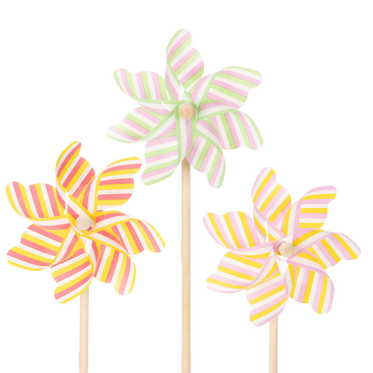 - Set consisting of 3 striped windmills in delicate pastel colors